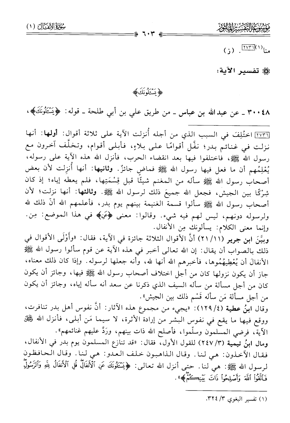 (¬١) تفسير البغوي ٣/ ٣٢٤.