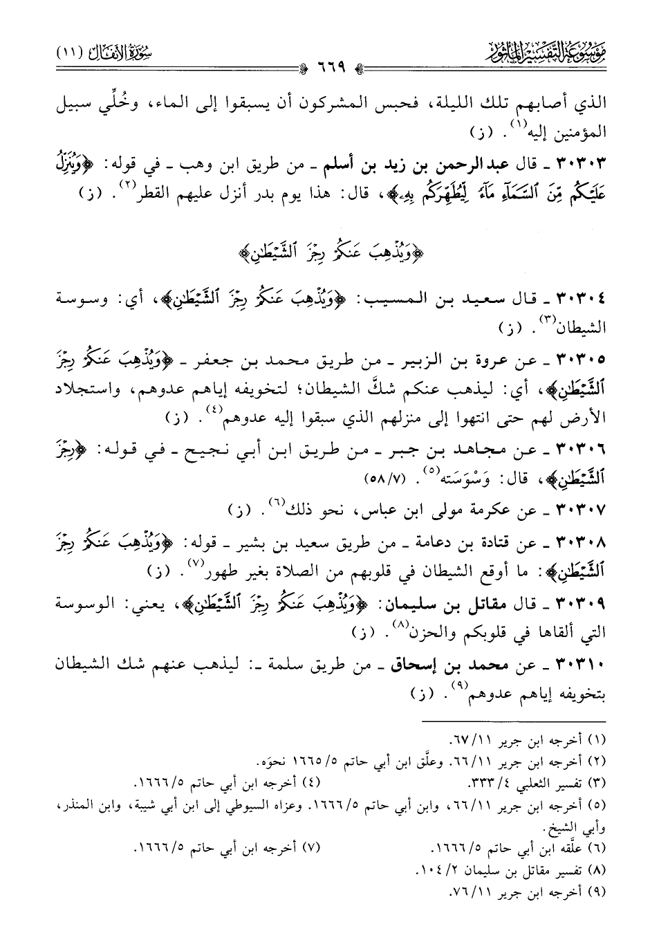 ٣٠٣٠٤ - قال سعيد بن المسيب: {ويذهب عنكم رجز الشيطان}، أي: وسوسة الشيطان (¬٣). (ز)