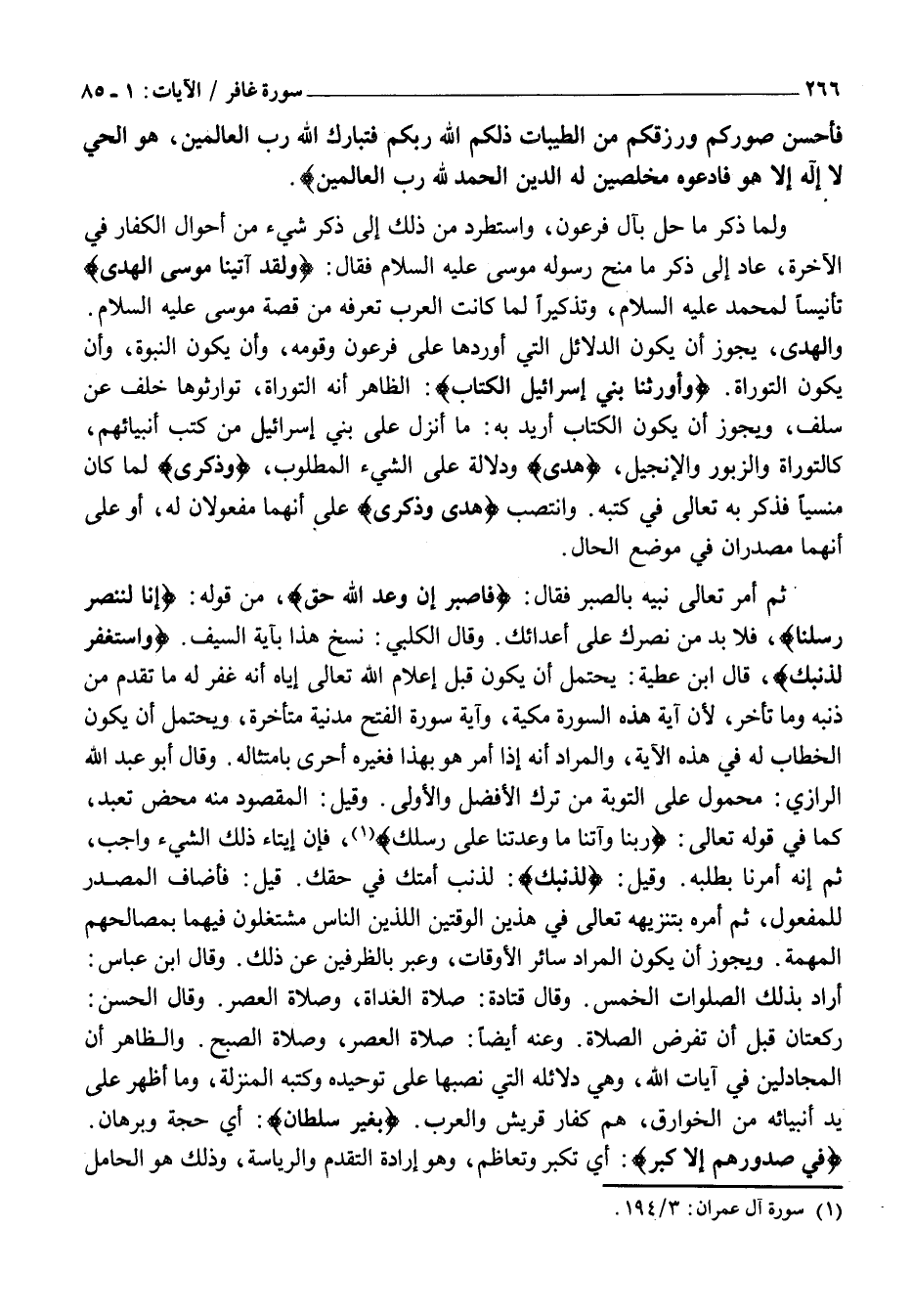فَأَحْسَنَ صُوَرَكُمْ وَرَزَقَكُمْ مِنَ الطَّيِّباتِ ذلِكُمُ اللَّهُ رَبُّكُمْ فَتَبارَكَ اللَّهُ رَبُّ الْعالَمِينَ، هُوَ الْحَيُّ لَا إِلهَ إِلَّا هُوَ فَادْعُوهُ مُخْلِصِينَ لَهُ الدِّينَ الْحَمْدُ لِلَّهِ رَبِّ الْعالَمِينَ.