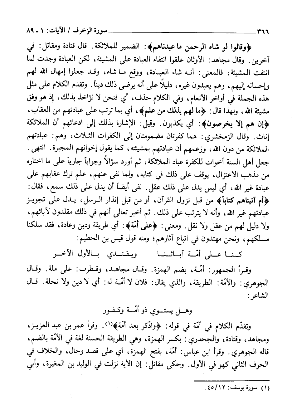 أَمْ آتَيْناهُمْ كِتاباً مِنْ قَبْلِ نُزُولِ الْقُرْآنِ، أَوْ مِنْ قَبْلِ إِنْذَارِ الرُّسُلِ، يَدُلُّ عَلَى تَجْوِيزِ عِبَادَتِهِمْ غَيْرَ اللَّهِ، وَأَنَّهُ لَا يَتَرَتَّبُ عَلَى ذَلِكَ. ثُمَّ أَخْبَرَ تَعَالَى أَنَّهُمْ فِي ذَلِكَ مُقَلِّدُونَ لِآبَائِهِمْ، وَلَا دَلِيلَ لَهُمْ مِنْ عَقْلٍ وَلَا نَقْلٍ. وَمَعْنَى: عَلى أُمَّةٍ: أَيْ طَرِيقَةٍ وَدِينٍ وَعَادَةٍ، فَقَدْ سَلَكْنَا مَسْلَكَهُمْ، وَنَحْنُ مُهْتَدُونَ فِي اتِّبَاعِ آثَارِهِمْ وَمِنْهُ قَوْلُ قَيْسِ بْنِ الحطيم: