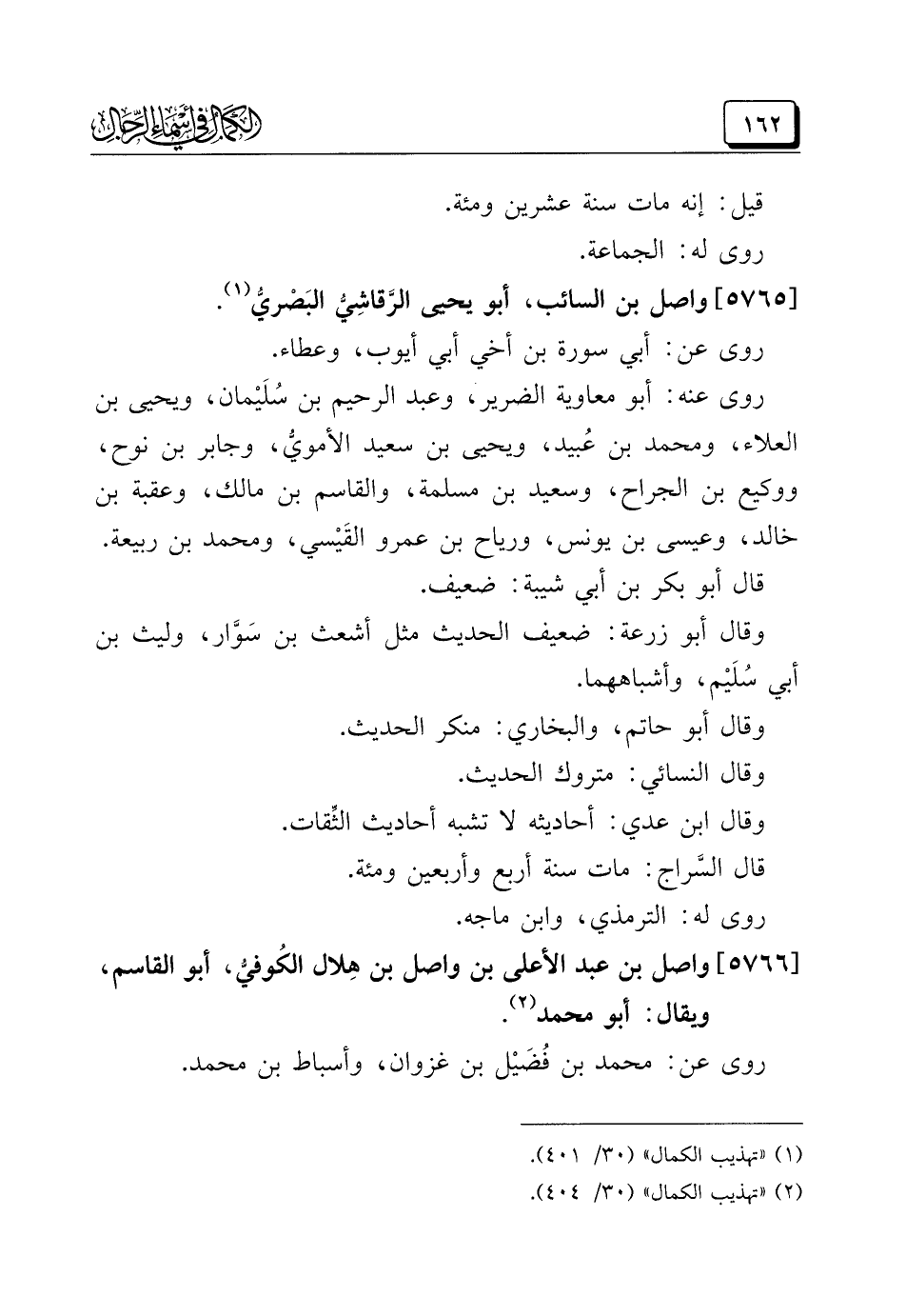 [٥٧٦٦] واصل بن عبد الأعلى بن واصل بن هِلال الكُوفيُّ، أبو القاسم، ويقال: أبو محمد (¬٢).