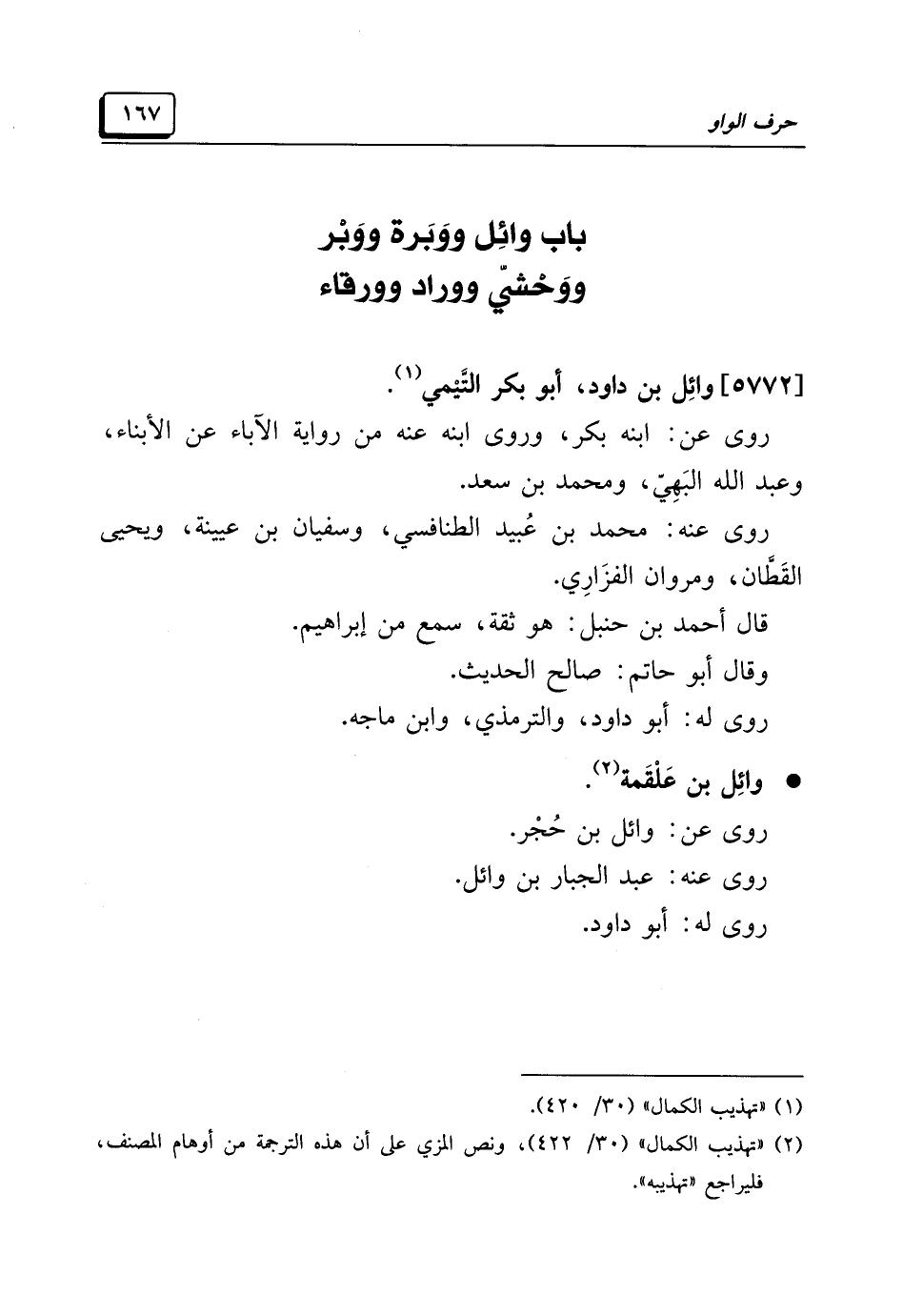 باب وائِل ووَبَرة ووَبْر ووَحْشيّ ووراد وورقاء