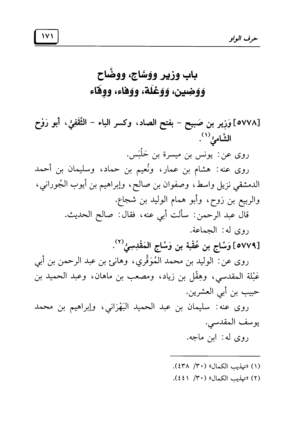 [٥٧٧٩] وَسَّاج بن عُقْبة بن وَسَّاج المَقْدِسِيُّ (¬٢).