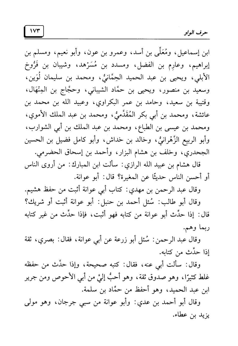 قال هشام بن عبيد الله الرازي: سألت ابن المبارك: من أروى الناس أو أحسن الناس حديثًا عن المغيرة؟ قال: أبو عوانة.