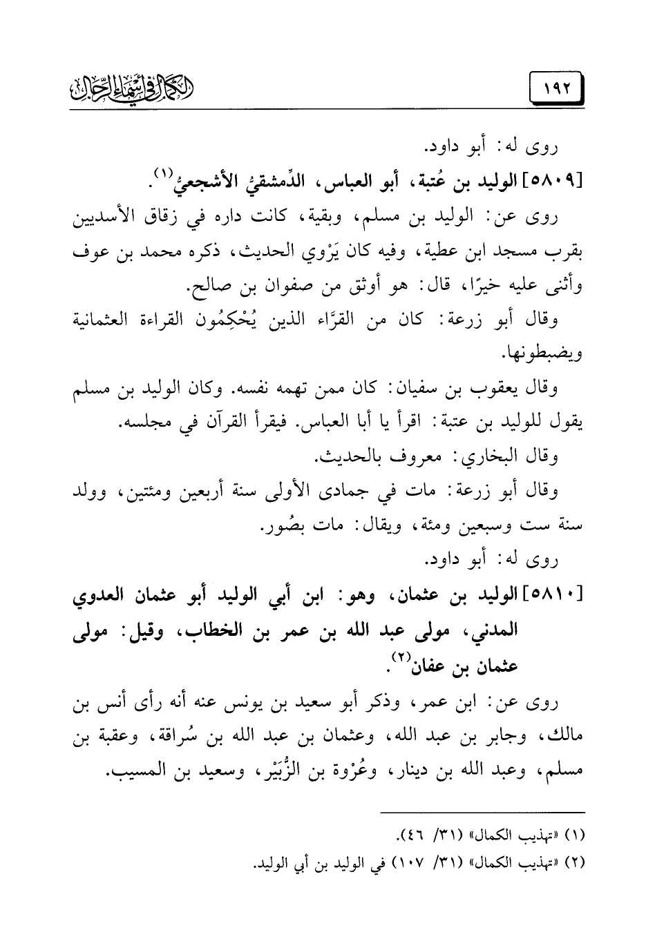 (¬٢) "تهذيب الكمال" (٣١/ ١٠٧) في الوليد بن أبي الوليد.
