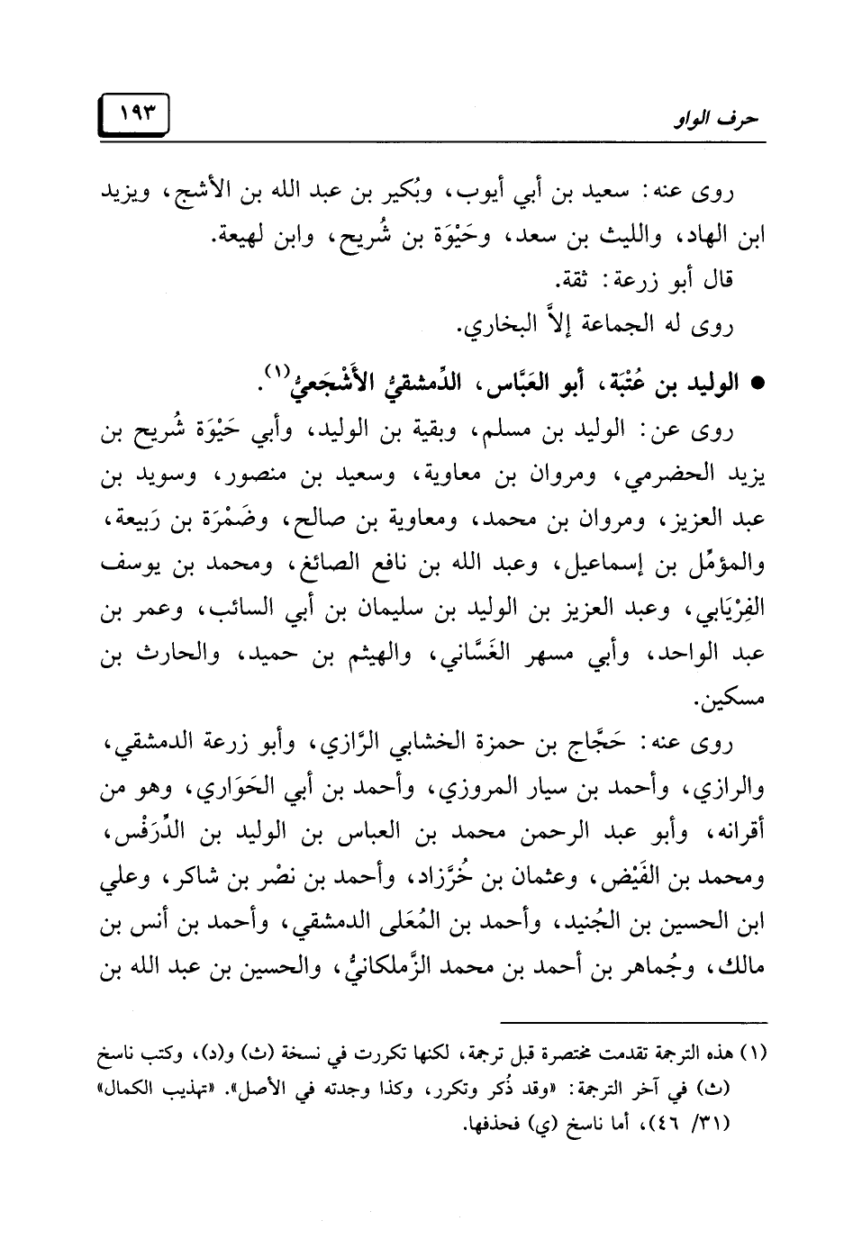 • الوليد بن عُتْبَة، أبو العَبَّاس، الدِّمشقيُّ الأَشْجَعيُّ (¬١).