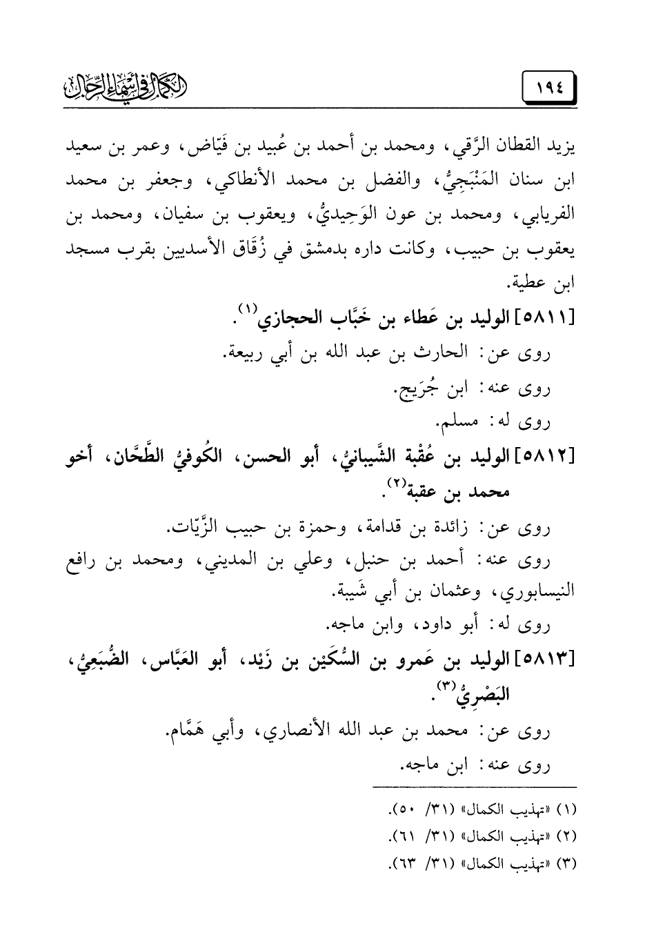 (¬٣) "تهذيب الكمال" (٣١/ ٦٣).