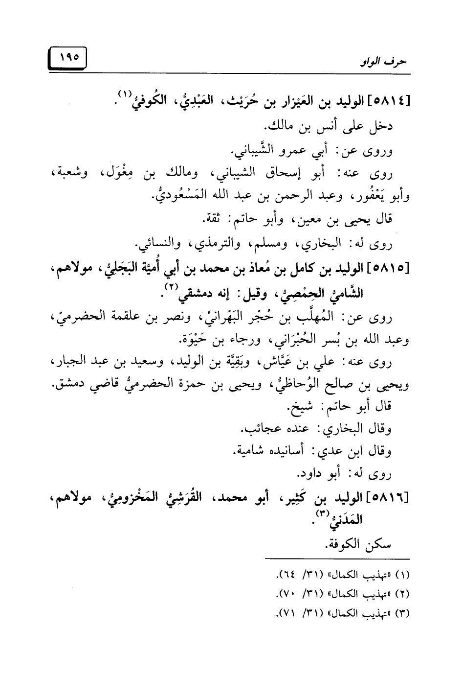 [٥٨١٥] الوليد بن كامل بن مُعاذ بن محمد بن أبي أُميَّة البَجَلِيُّ، مولاهم، الشَّامِيُّ الحِمْصِيُّ، وقيل: إنَّه دمشقي (¬٢).