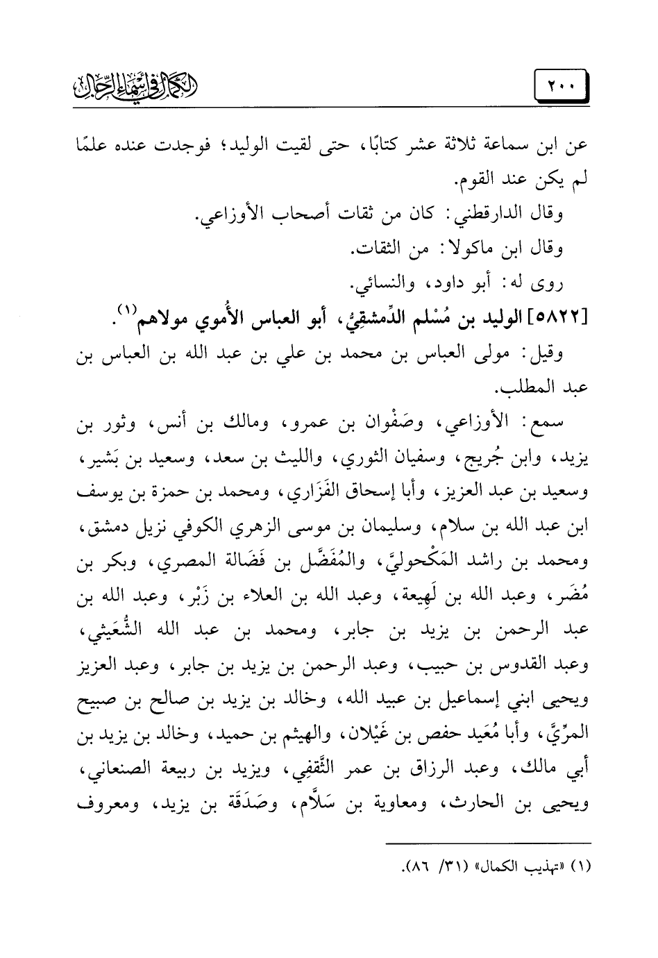 (¬١) "تهذيب الكمال" (٣١/ ٨٦).