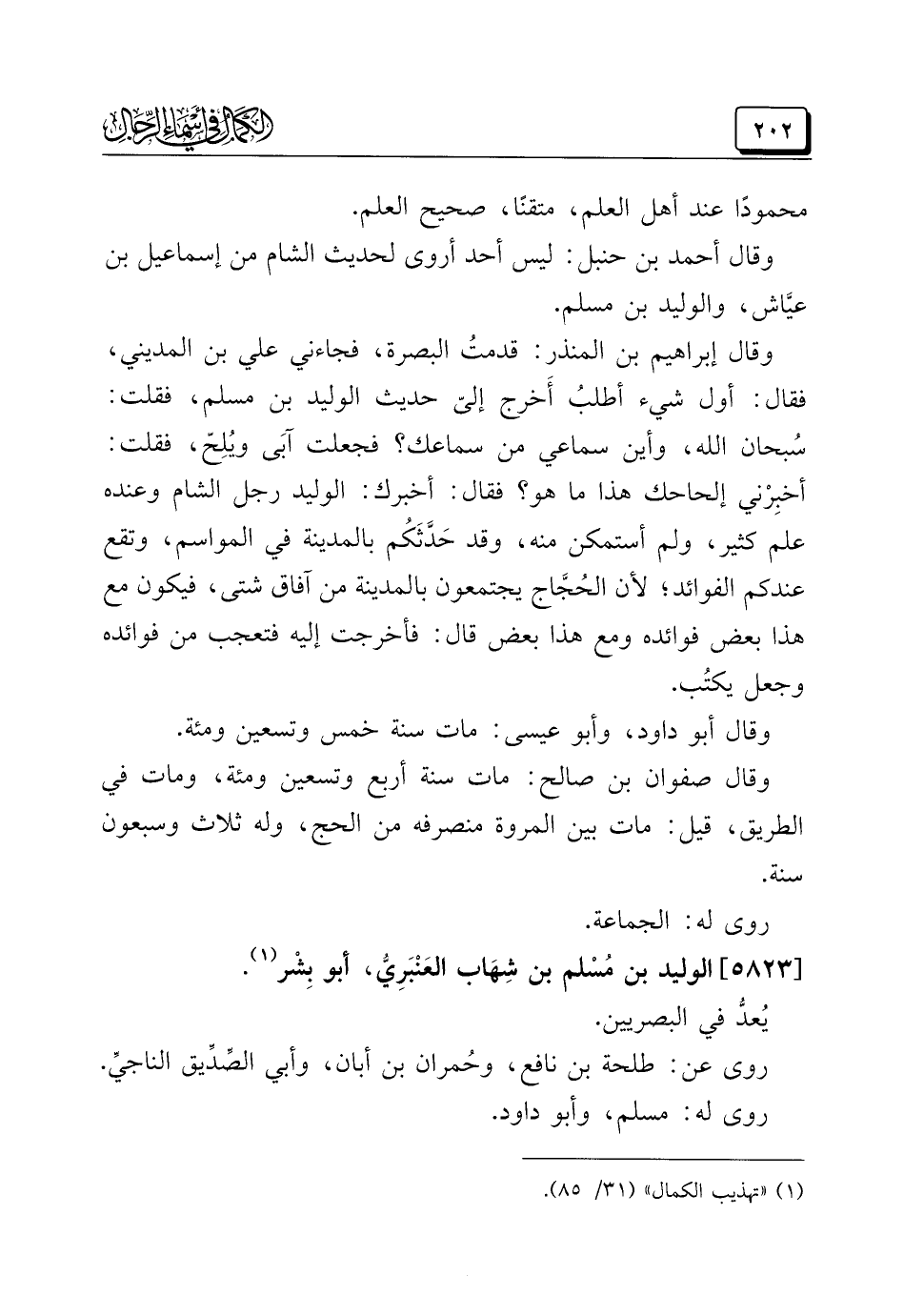 (¬١) "تهذيب الكمال" (٣١/ ٨٥).