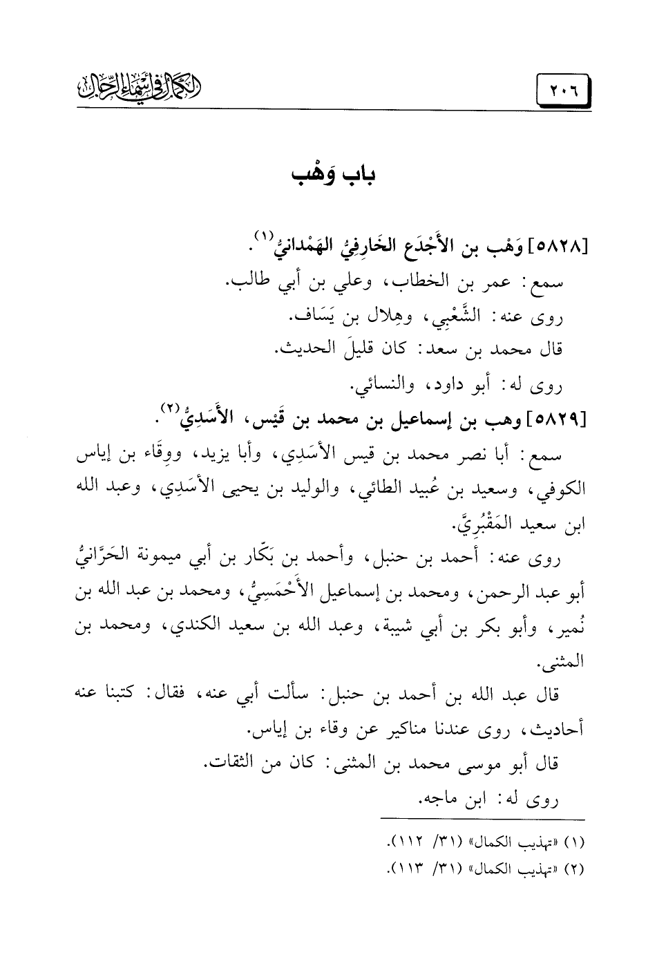 (¬١) "تهذيب الكمال" (٣١/ ١١٢).