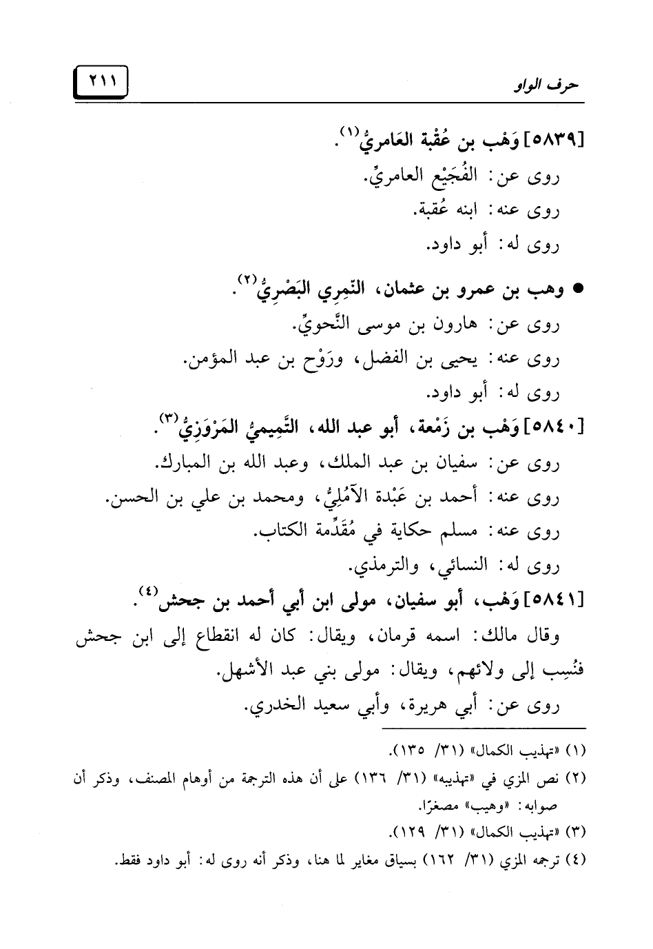 (¬٢) نص المزي في "تهذيبه" (٣١/ ١٣٦) على أن هذه الترجمة من أوهام المصنِّف، وذكر أن صوابه: "وَهيب" مصغرًا.