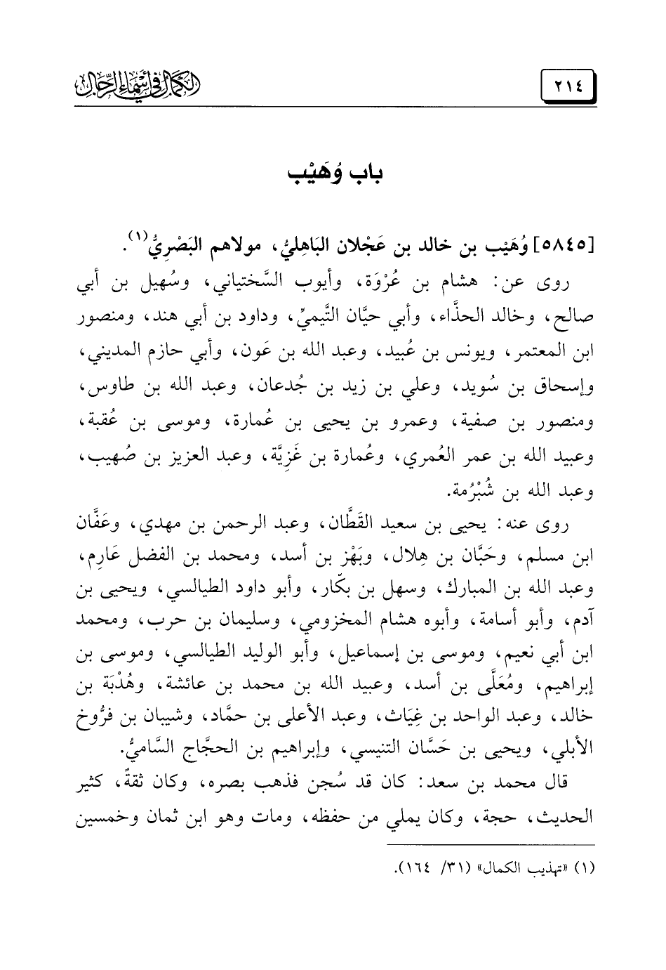 (¬١) "تهذيب الكمال" (٣١/ ١٦٤).