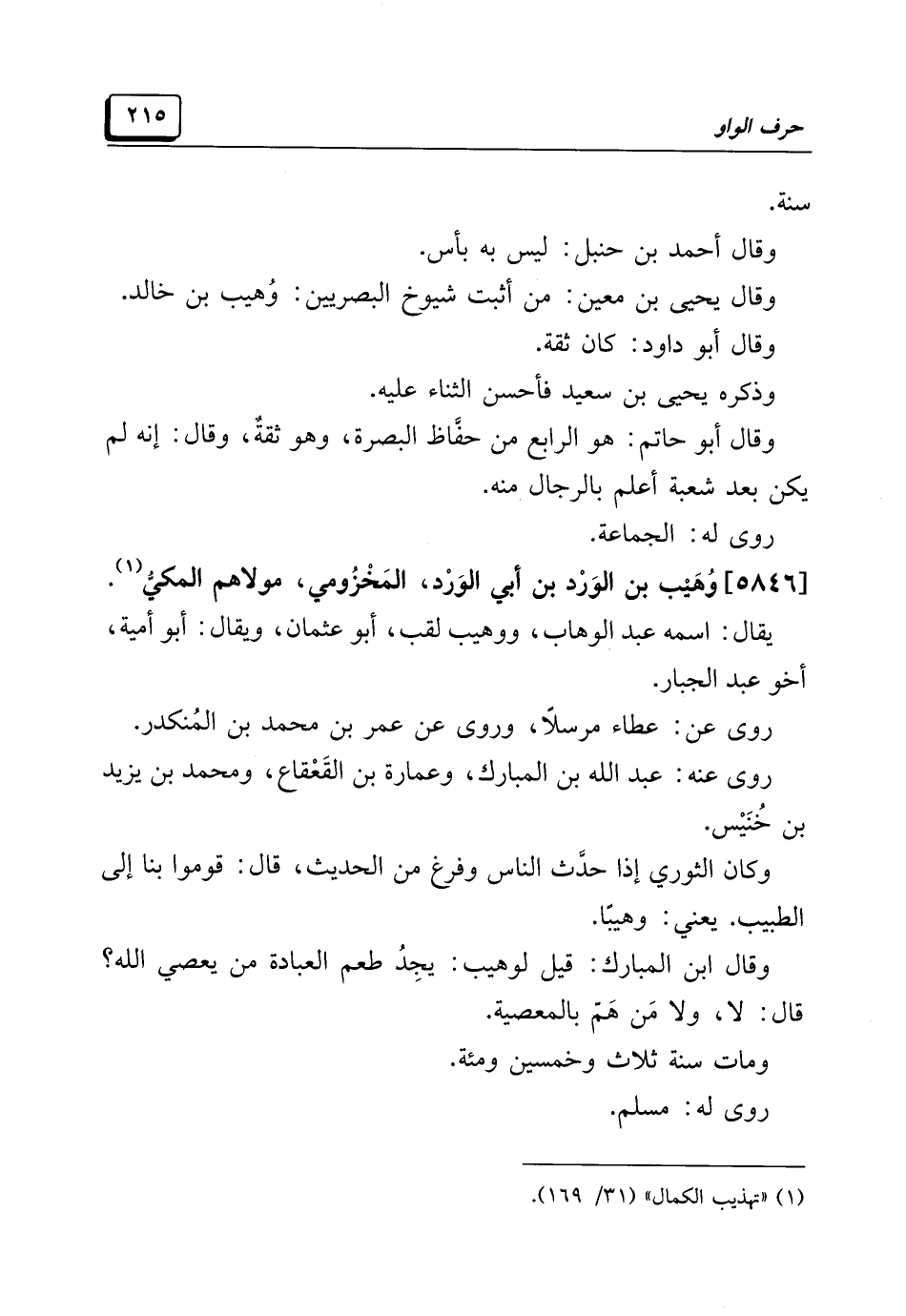 (¬١) "تهذيب الكمال" (٣١/ ١٦٩).
