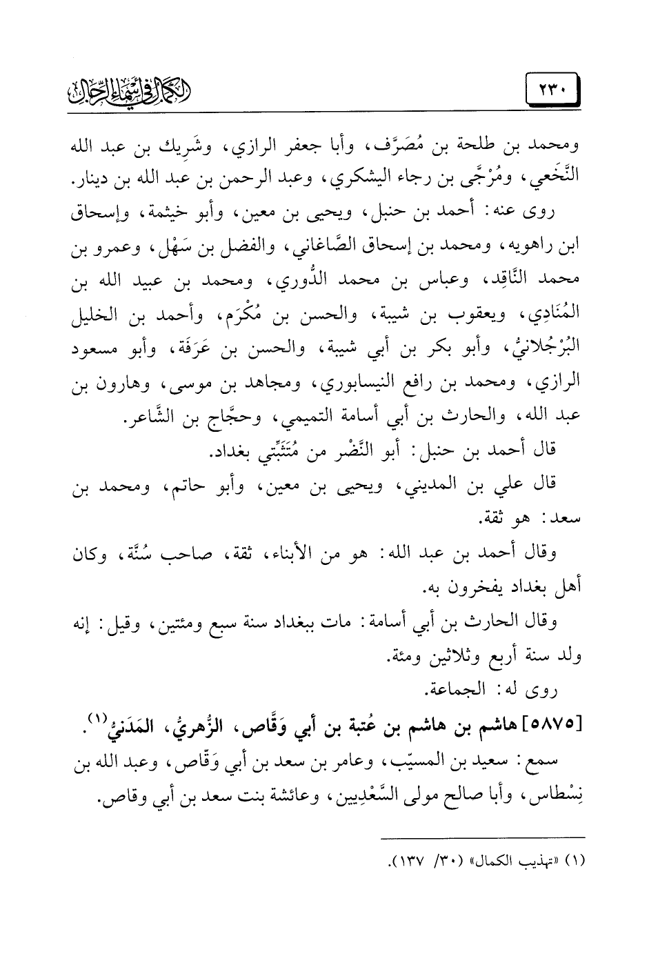 (¬١) "تهذيب الكمال" (٣٠/ ١٣٧).