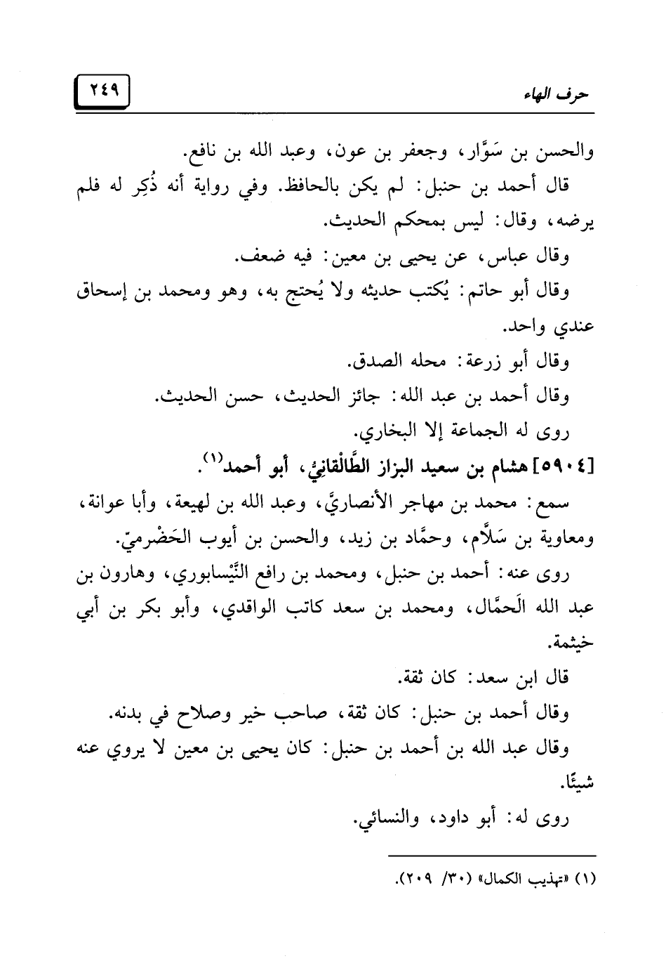 [٥٩٠٤] هشام بن سعيد البزاز الطَّالْقانِيُّ، أبو أحمد (¬١).
