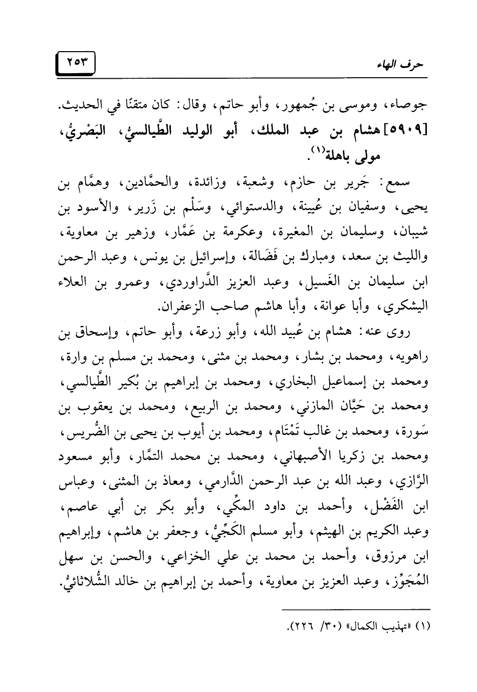 [٥٩٠٩] هشام بن عبد الملك، أبو الوليد الطَّيالسيُّ، البَصْريُّ، مولي باهلة (¬١).
