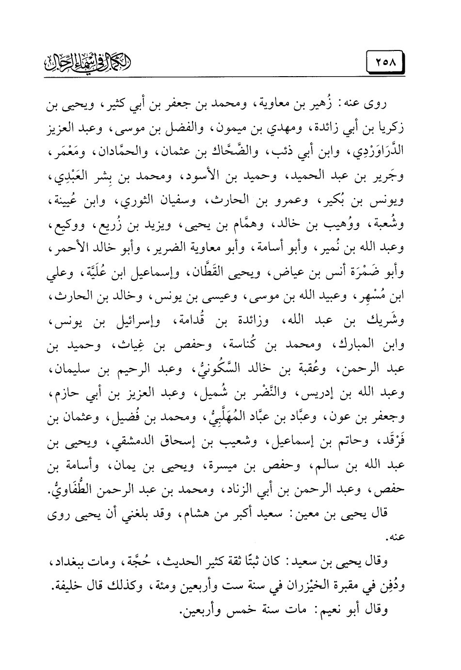 قال يحيى بن معين: سعيد أكبر من هشام، وقد بلغني أن يحيي روي عنه.
