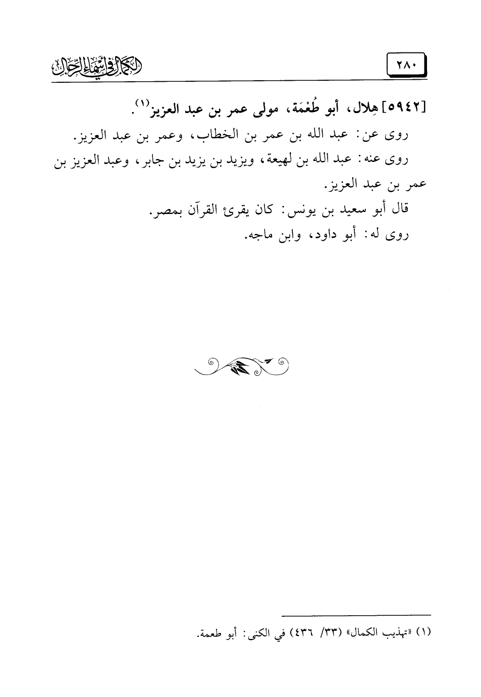 (¬١) "تهذيب الكمال" (٣٣/ ٤٣٦) في الكني: أبو طعمة.