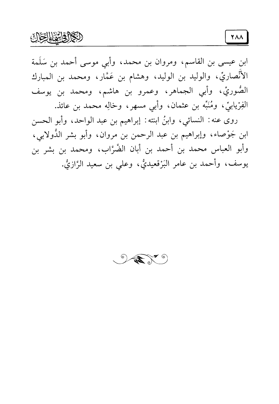روى عنه: النسائي، وابن ابنته: إبراهيم بن عبد الواحد، وأبو الحسن ابن جَوْصاء، وإبراهيم بن عبد الرحمن بن مروان، وأبو بشر الدُّولابي، وأبو العباس محمد بن أحمد بن أبان الضَّرَّاب، ومحمد بن بشر بن يوسف، وأحمد بن عامر البَرْقعيديُّ، وعلي بن سعيد الرَّازيُّ.