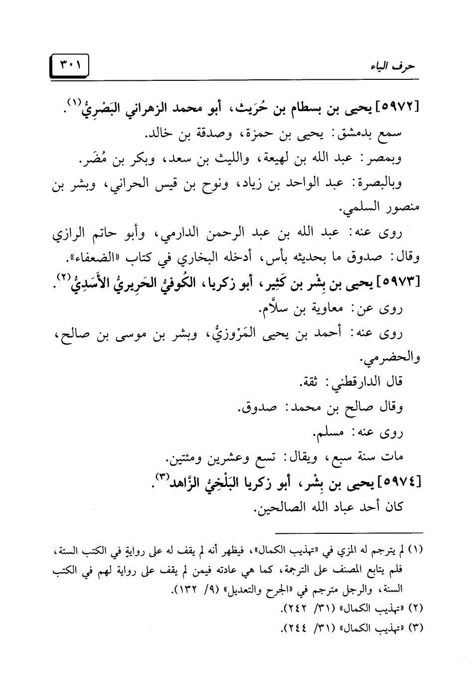[٥٩٧٣] يحيي بن بِشْر بن كَثِير، أبو زكريا، الكُوفيُّ الحَرِيريُّ الأَسَدِيُّ (¬٢).