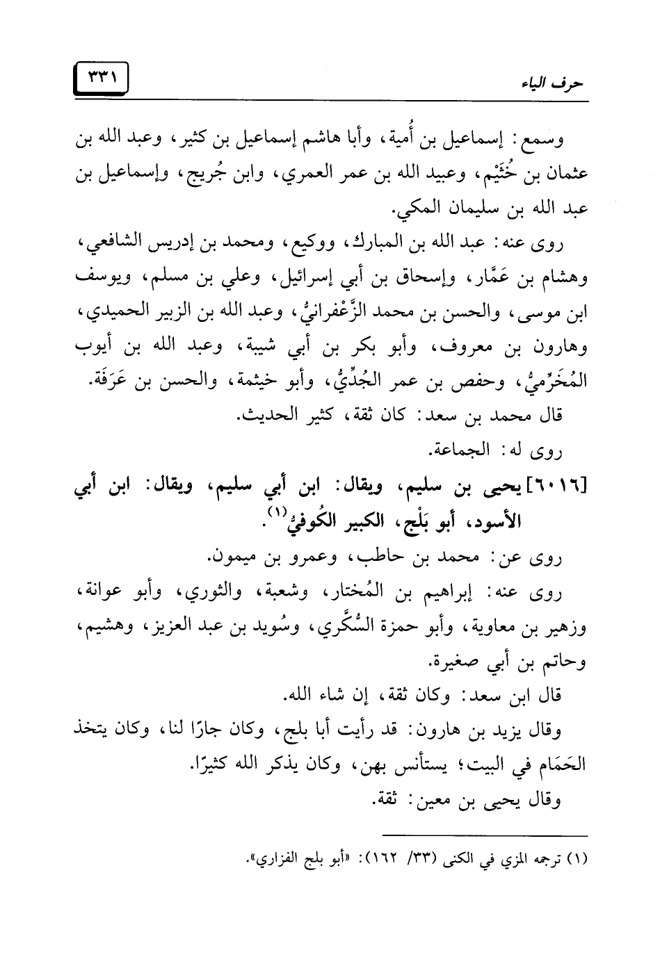 (¬١) ترجمه المزي في الكني (٣٣/ ١٦٢): "أبو بلج الفزاري".