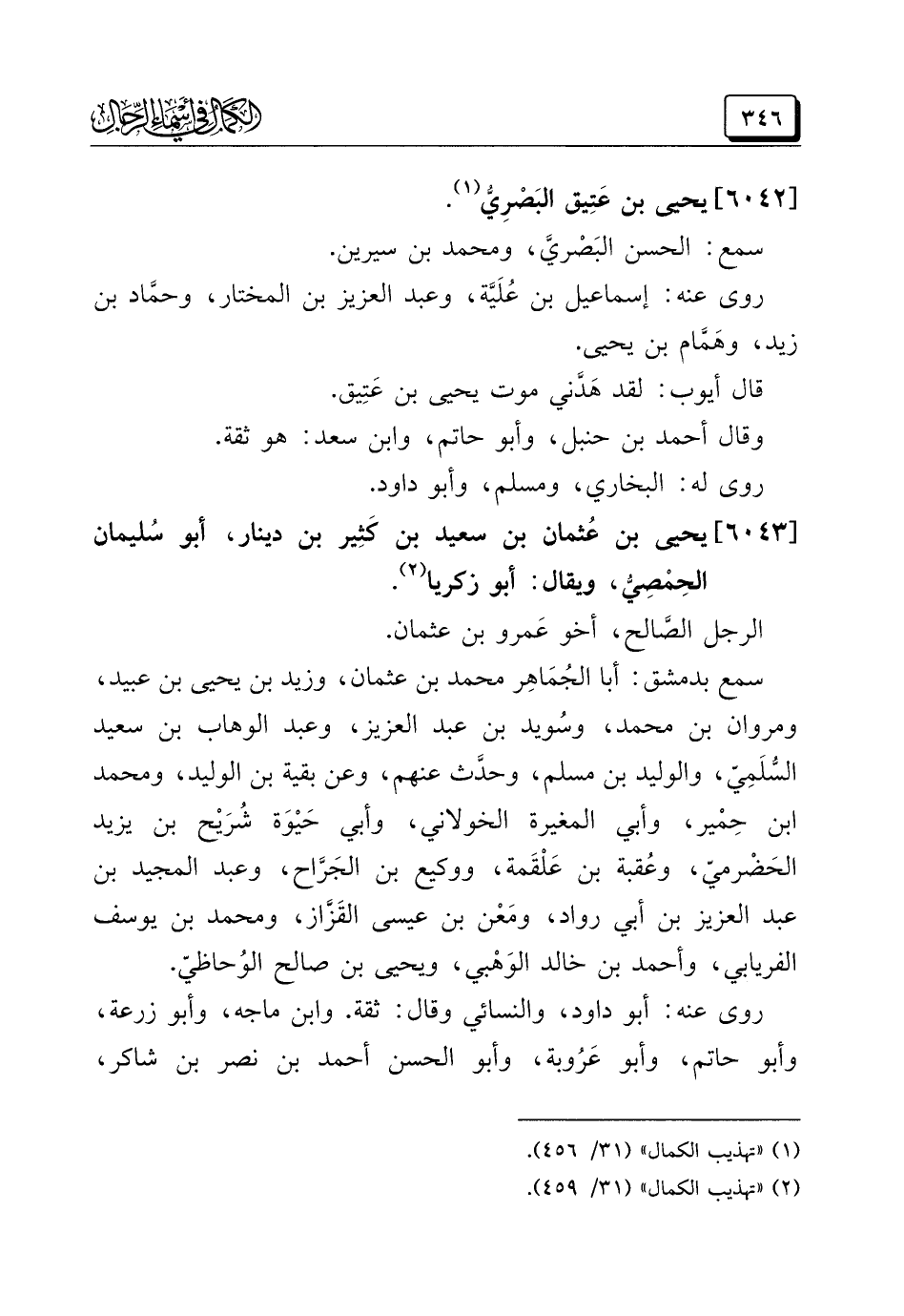 (¬٢) "تهذيب الكمال" (٣١/ ٤٥٩)