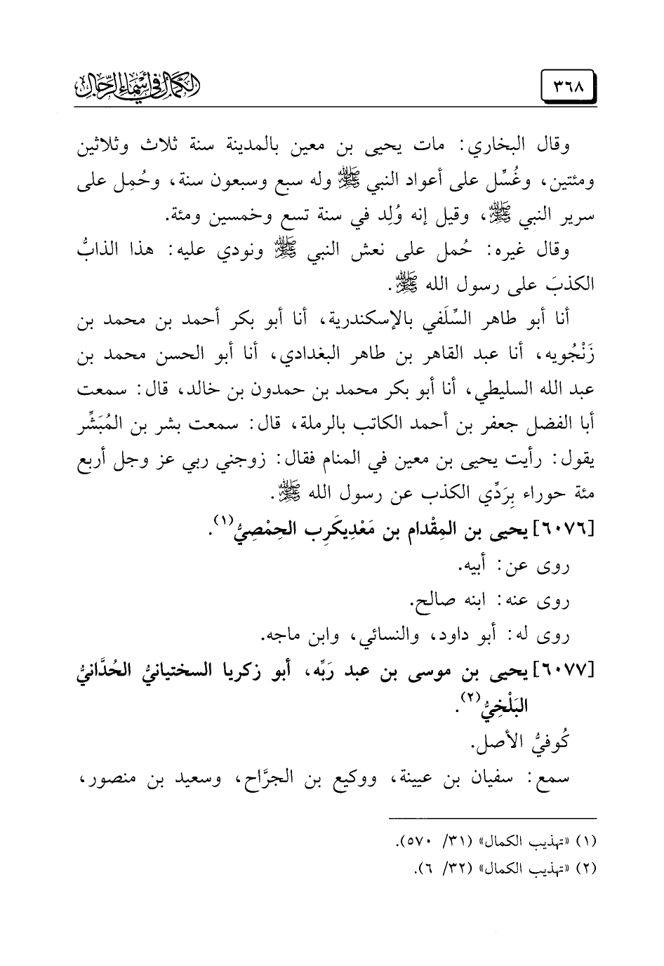 (¬٢) "تهذيب الكمال" (٣٢/ ٦).