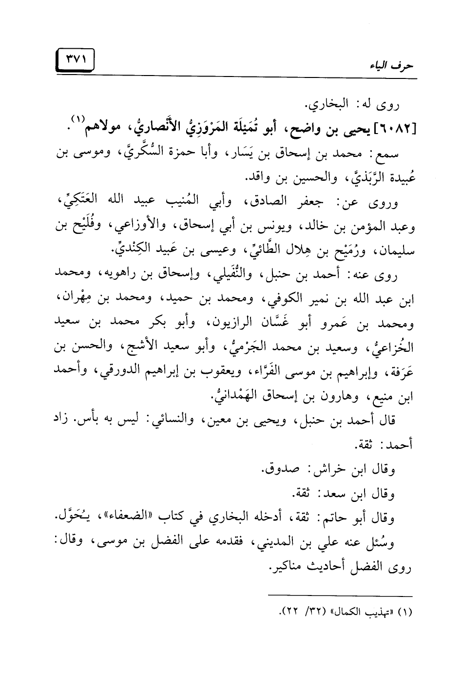 (¬١) "تهذيب الكمال" (٣٢/ ٢٢).