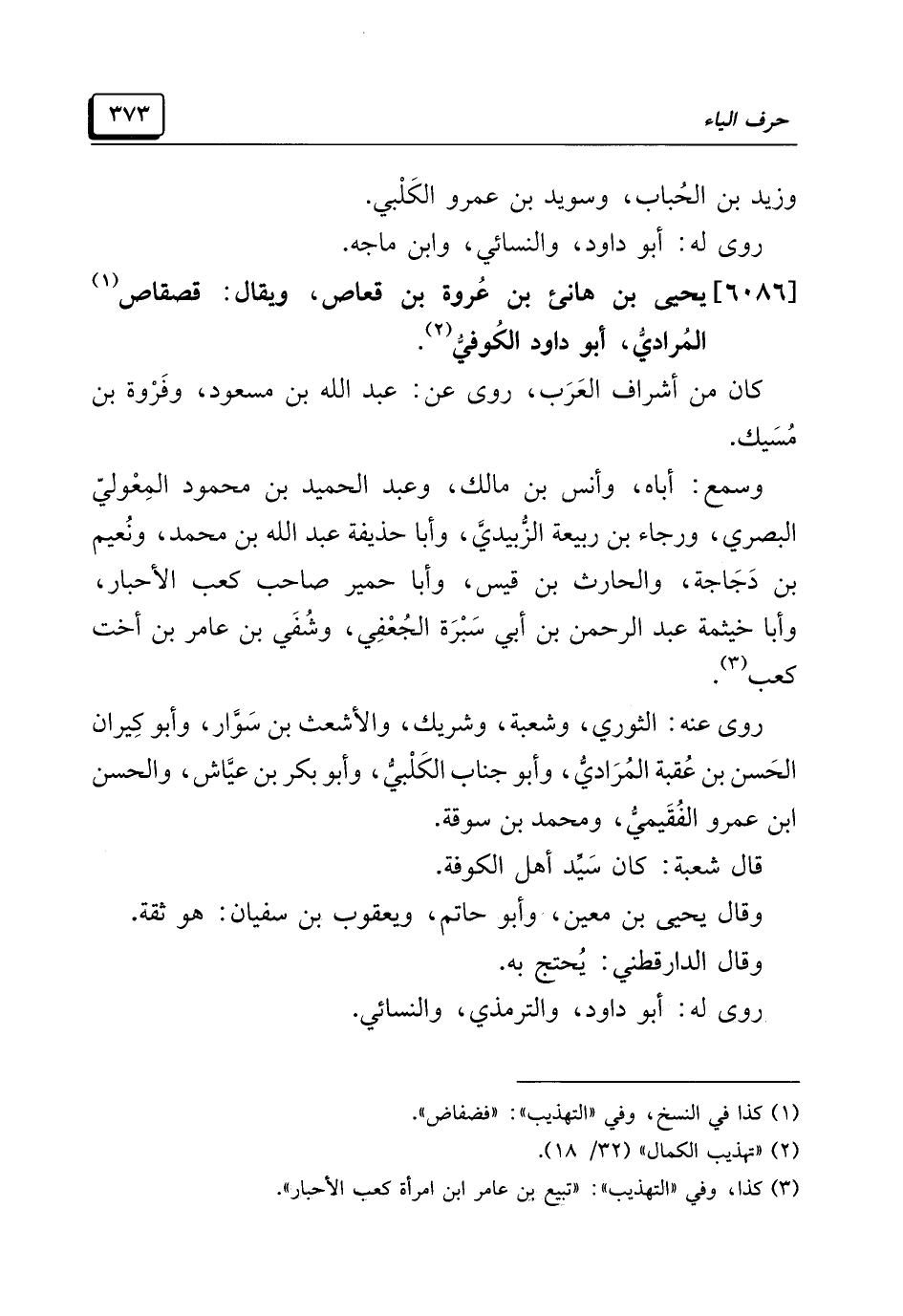 [٦٠٨٦] يحيى بن هانئ بن عُروة بن قعاص، ويقال: قصقاص (¬١) المُراديُّ، أبو داود الكُوفيُّ (¬٢).