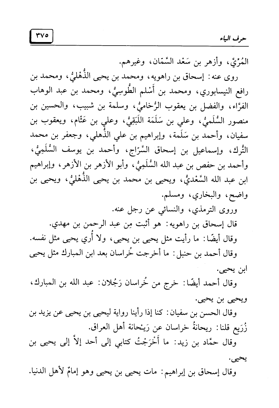 وقال أحمد أيضًا: خرج من خُراسان رَجُلان: عبد الله بن المبارك، ويحيى بن يحيى.