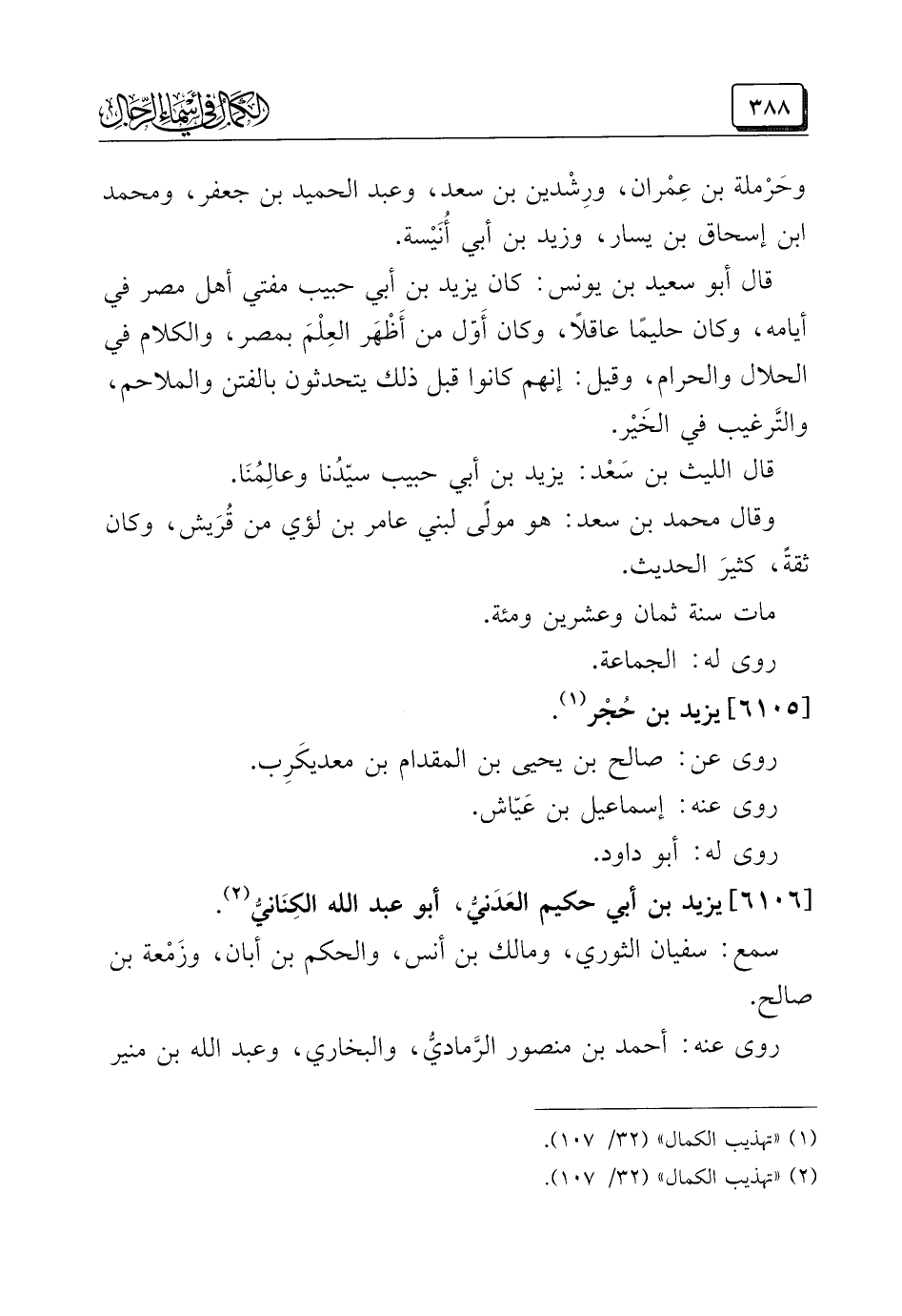 (¬١) "تهذيب الكمال" (٣٢/ ١٠٧).