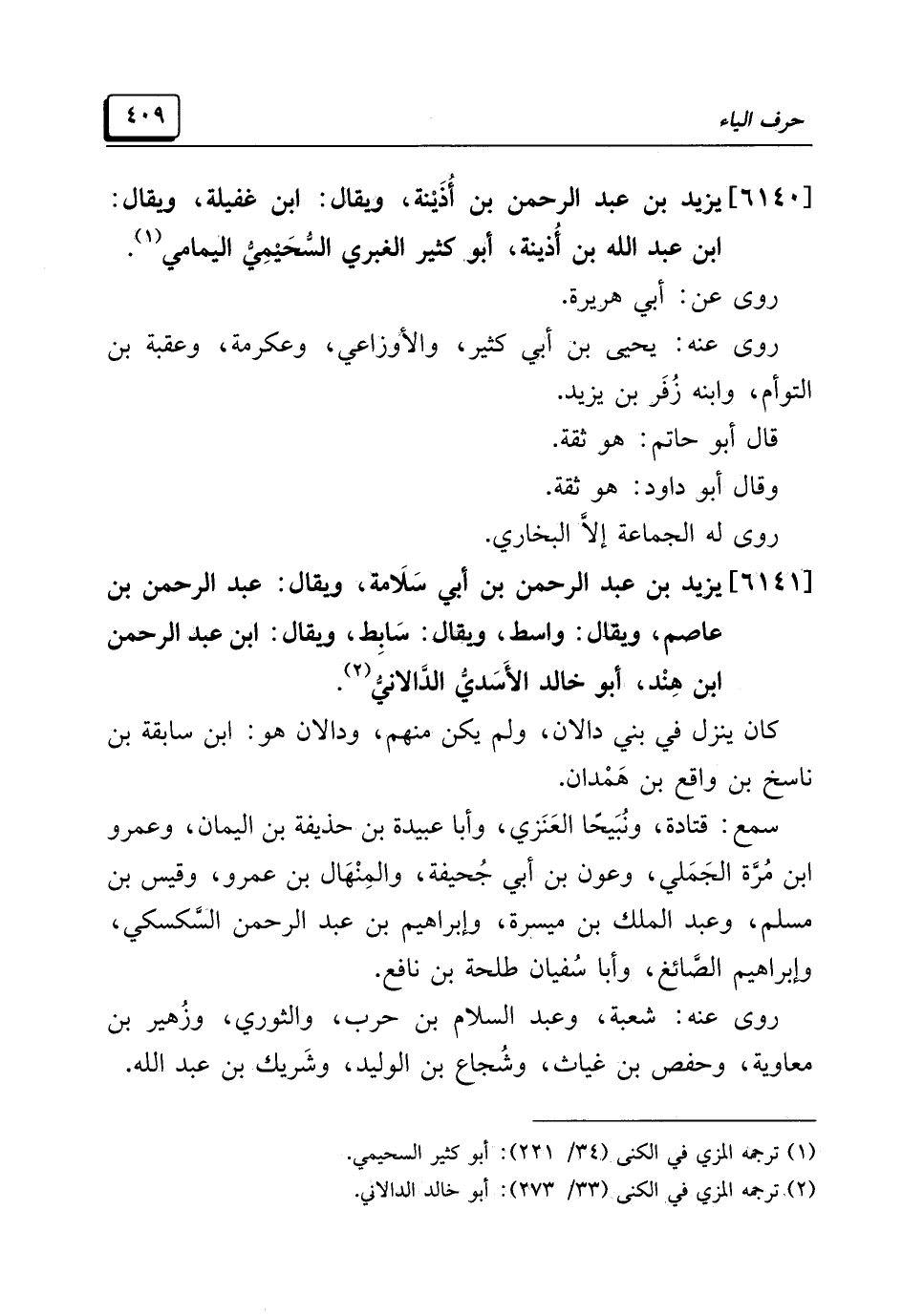 (¬٢) ترجمه المزي في الكني (٣٣/ ٢٧٣): أبو خالد الدالاني.