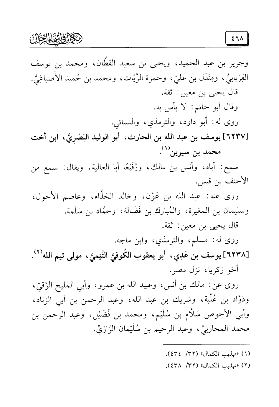 (¬٢) "تهذيب الكمال" (٣٢/ ٤٣٨).