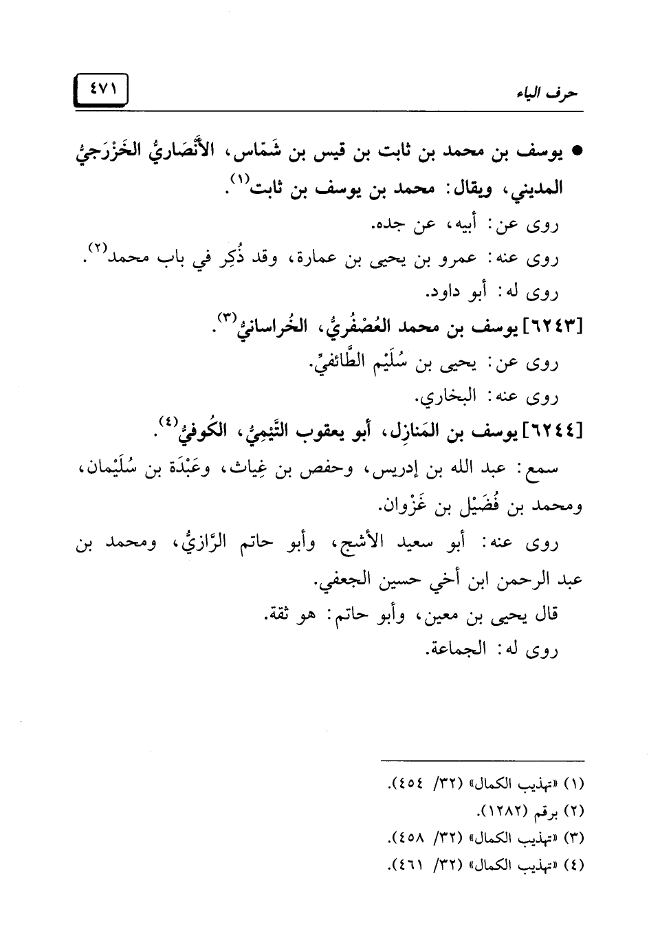 (¬٣) "تهذيب الكمال" (٣٢/ ٤٥٨).
