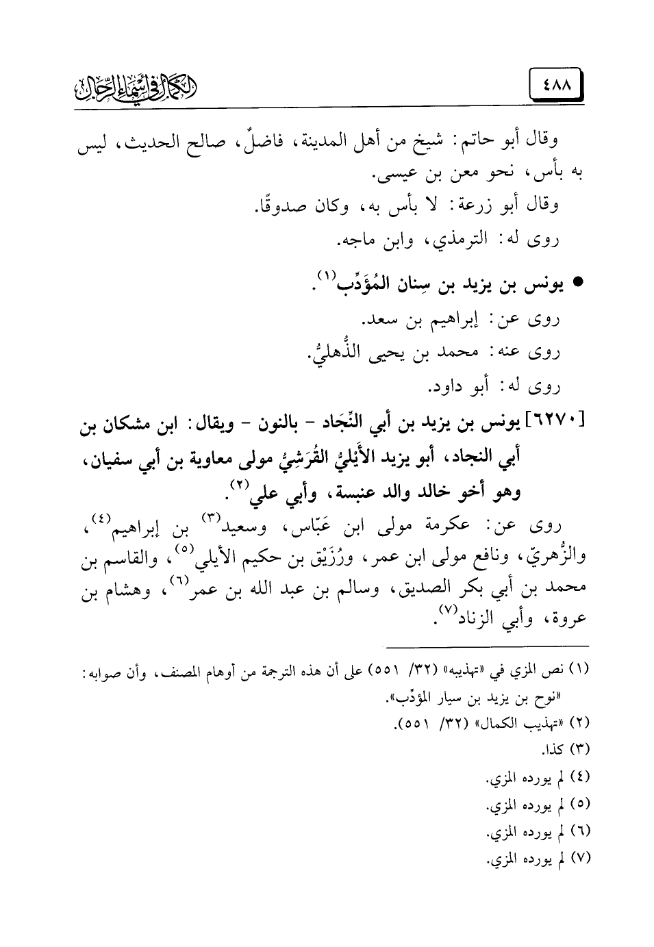 • يُونُس بن يزيد بن سِنان المُؤَدِّب (¬١).