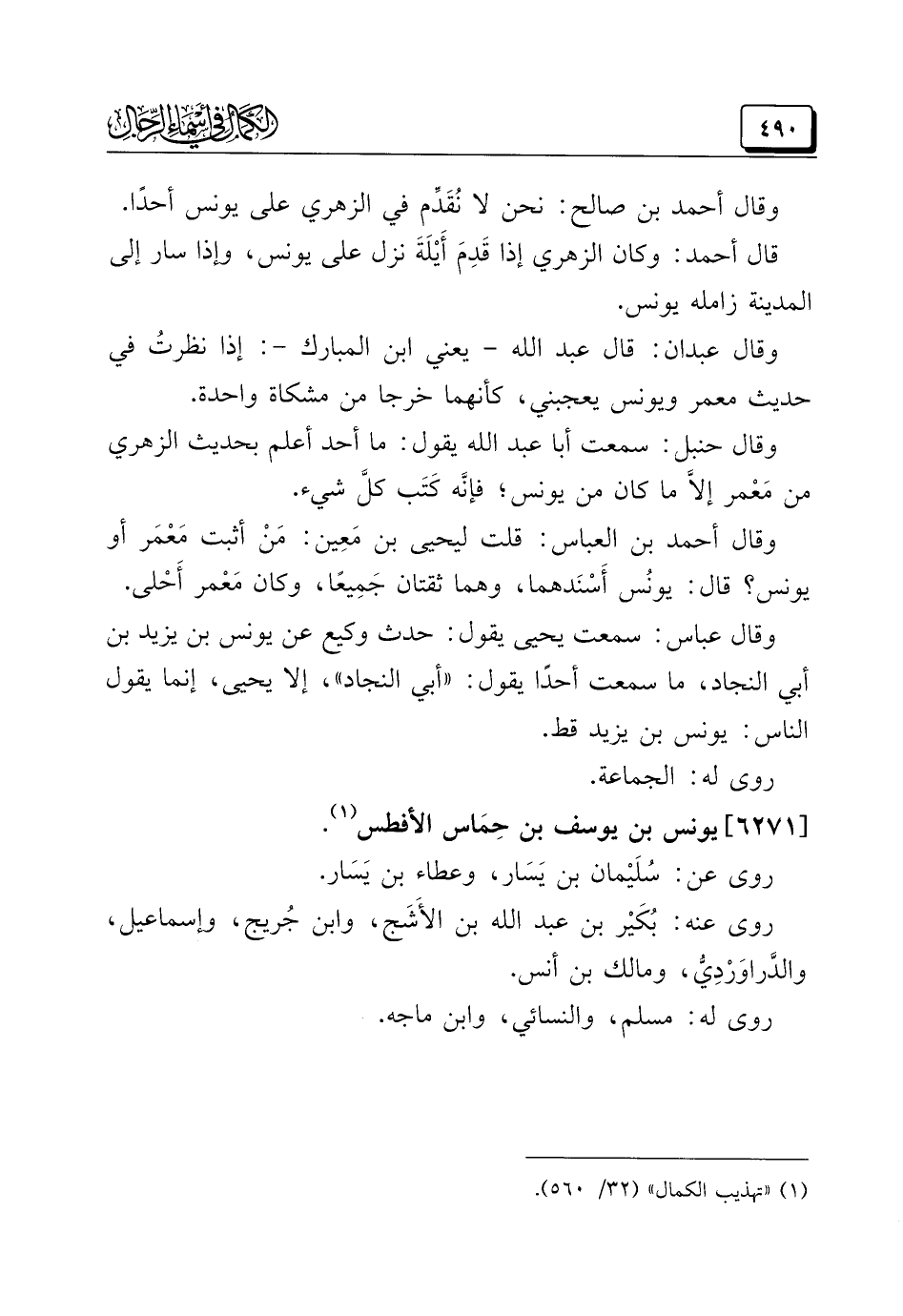 (¬١) "تهذيب الكمال" (٣٢/ ٥٦٠).