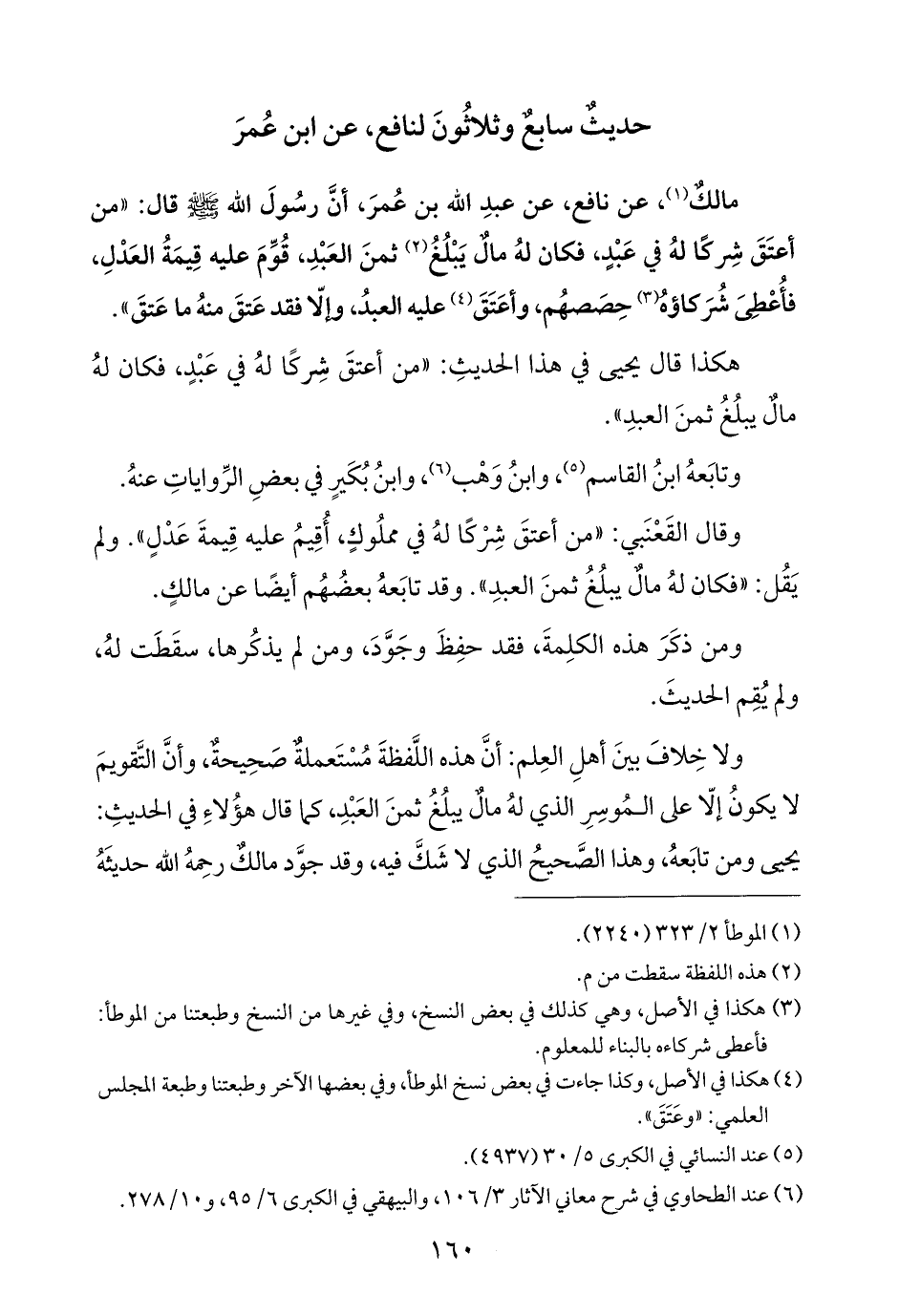 (¬٤) هكذا في الأصل، وكذا جاءت في بعض نسخ الموطأ، وفي بعضها الآخر وطبعتنا وطبعة المجلس العلمي: "وعَتَقَ".