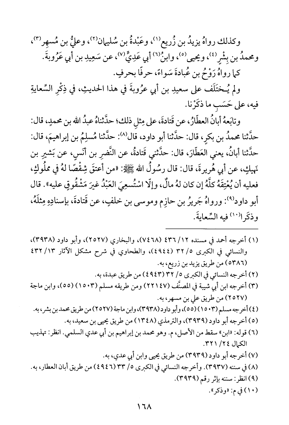 ولم يُختَلَف على سعيدِ بن أبي عرُوبةَ في هذا الحديثِ، في ذِكْرِ السِّعايةِ فيه، على حَسَبِ ما ذكَرْنا.