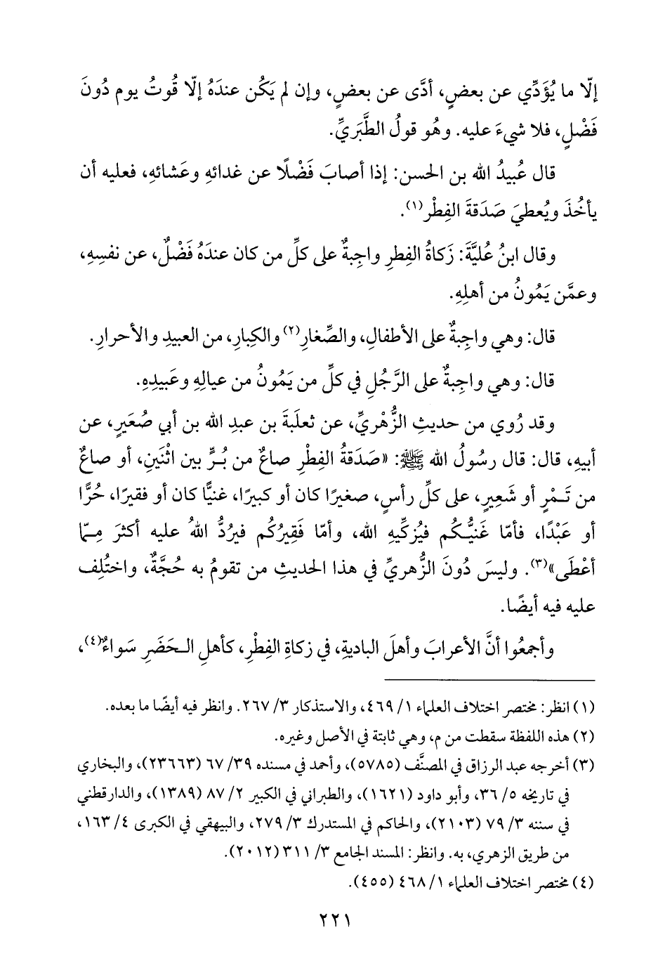 (¬١) انظر: مختصر اختلاف العلماء ١/ ٤٦٩، والاستذكار ٣/ ٢٦٧. وانظر فيه أيضًا ما بعده.