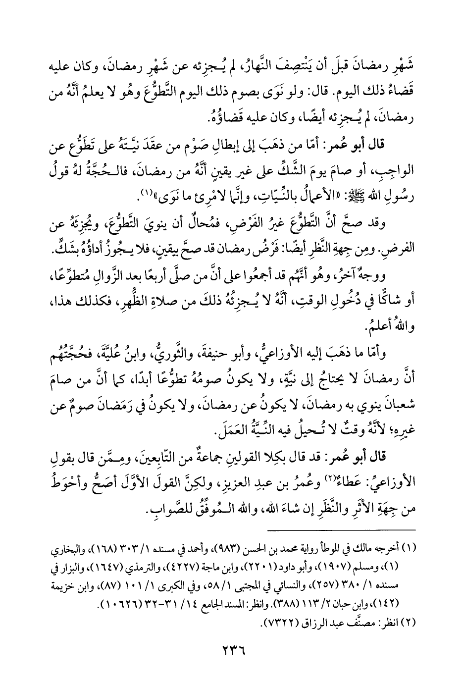 قال أبو عُمر: أمّا من ذهَبَ إلى إبطالِ صَوْم من عقَدَ نيَّتَهُ على تَطَوُّع عن الواجِبِ، أو صامَ يومَ الشَّكِّ على غير يقينٍ أَنَّهُ من رمضانَ، فالحُجَّةُ لهُ قولُ رسُولِ الله - صلى الله عليه وسلم -: "الأعمالُ بالنِّيّاتِ، وإنَّما لامْرِئ ما نَوَى" (¬١).