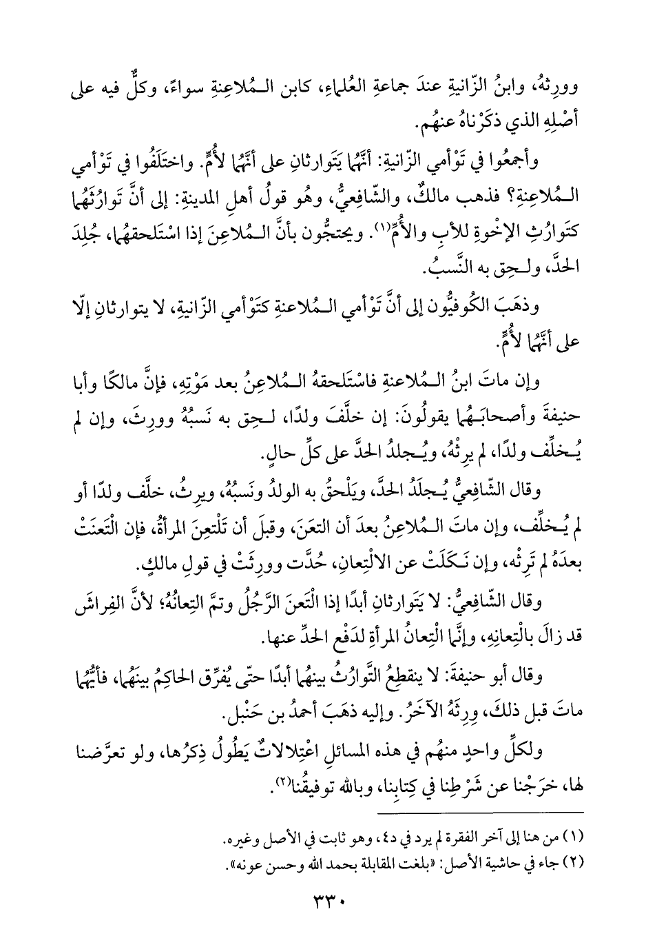 وأجمعُوا في تَوْأمي الزّانيةِ: أنَّهُما يَتَوارثانِ على أنَّهُما لأُمٍّ. واختَلَفُوا في تَوْأمي المُلاعِنةِ؟ فذهب مالكٌ، والشّافِعيُّ، وهُو قولُ أهلِ المدينةِ: إلى أنَّ تَوارُثَهُما كتَوارُثِ الإخْوةِ للأبِ والأُمِّ (¬١). ويحتجُّون بأنَّ المُلاعِنَ إذا اسْتَلحقهُما، جُلِدَ الحدَّ، ولحِق به النَّسبُ.