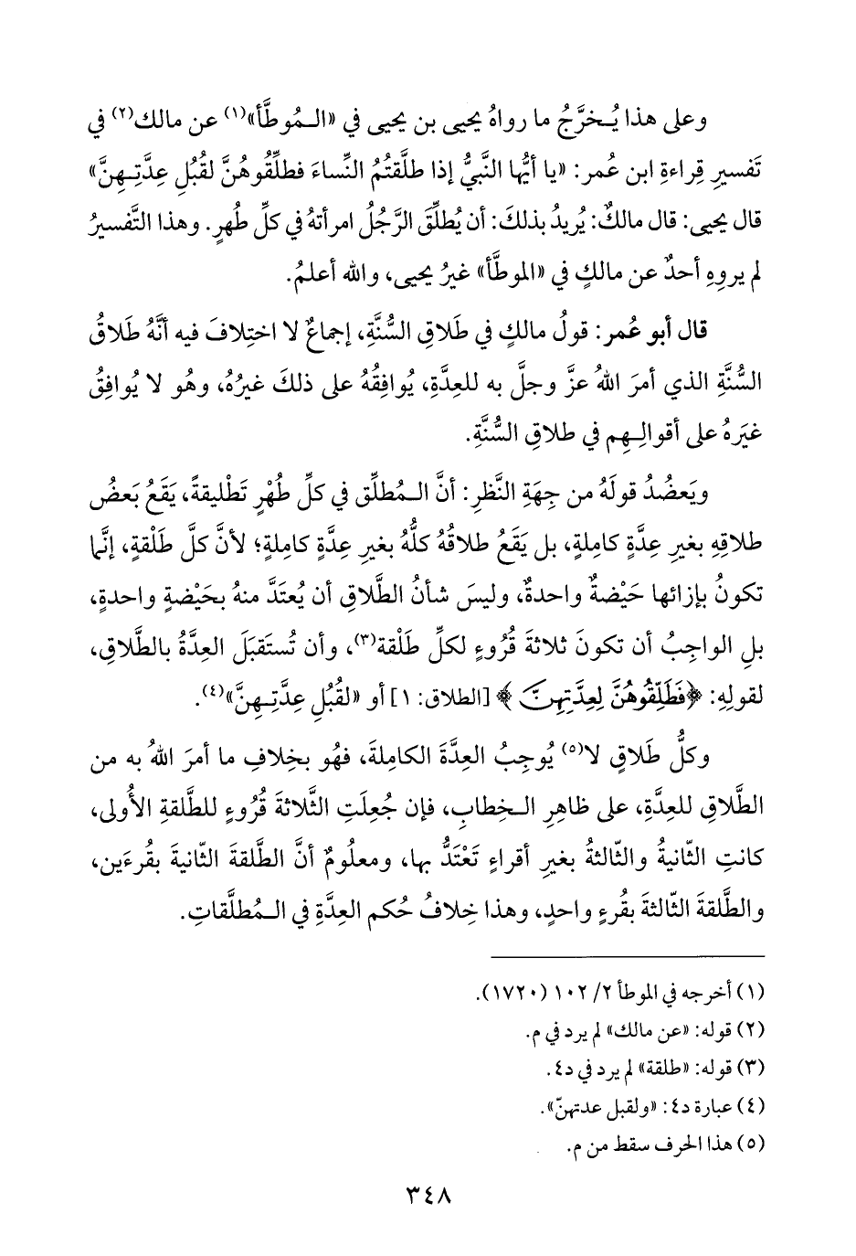 قال أبو عُمر: قولُ مالكٍ في طَلاقِ السُّنَّةِ، إجماعٌ لا اختِلافَ فيه أنَّهُ طَلاقُ السُّنَّةِ الذي أمرَ اللهُ عزَّ وجلَّ به للعِدَّةِ، يُوافِقُهُ على ذلكَ غيرُهُ، وهُو لا يُوافِقُ غيَرهُ على أقوالِهِم في طلاقِ السُّنَّةِ.