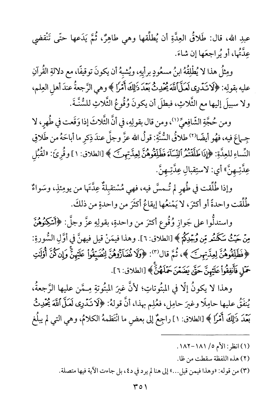 (¬١) انظر: الأم ٥/ ١٨١ - ١٨٢.
