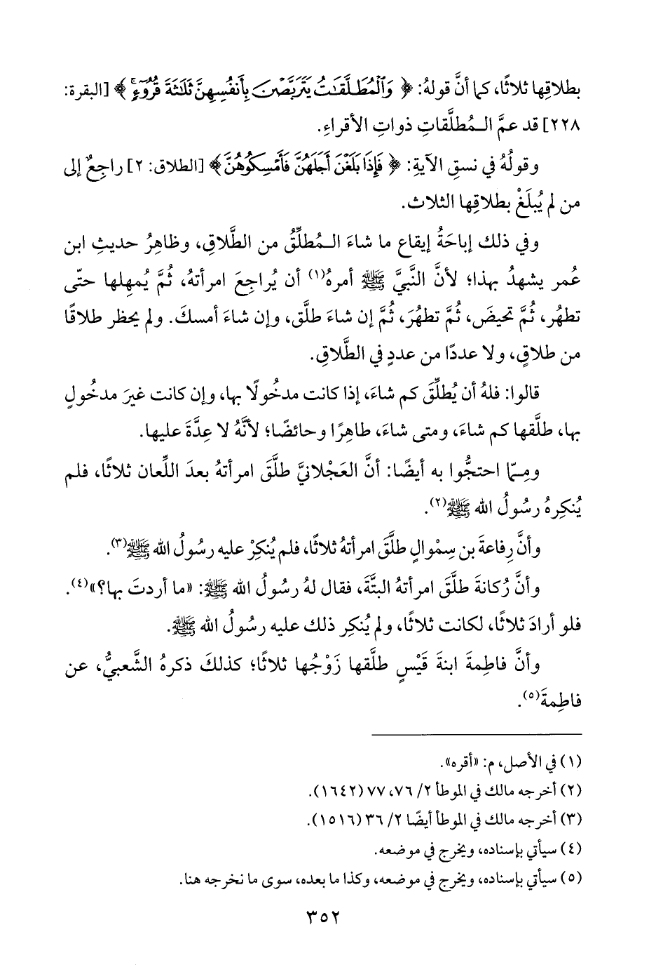 بطلاقِها ثلاثًا، كما أنَّ قولهُ: {وَالْمُطَلَّقَاتُ يَتَرَبَّصْنَ بِأَنْفُسِهِنَّ ثَلَاثَةَ قُرُوءٍ} [البقرة: ٢٢٨] قد عمَّ المُطلَّقاتِ ذواتِ الأقراءِ.
