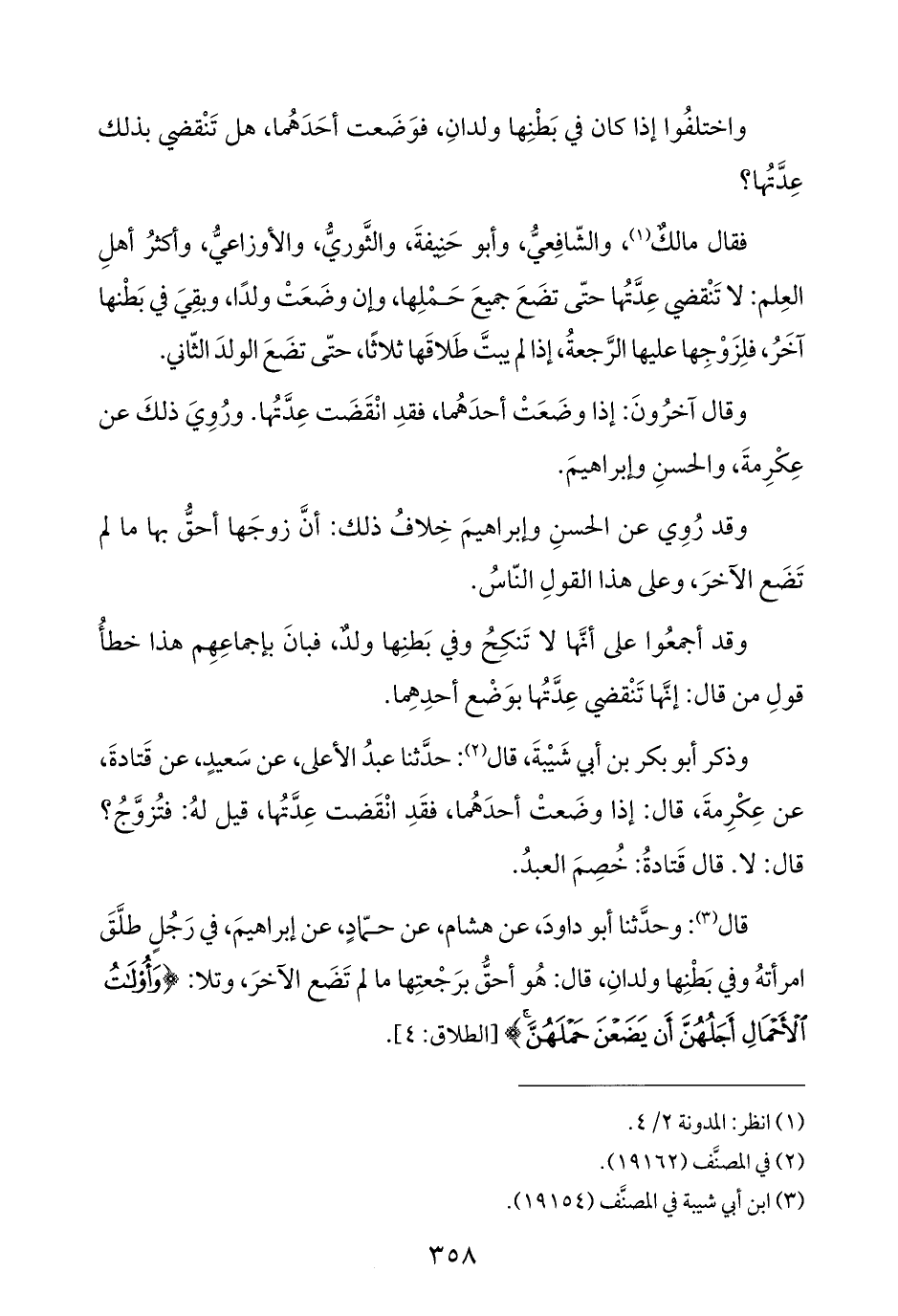 قال (¬٣): وحدَّثنا أبو داودَ، عن هشام، عن حمّادٍ، عن إبراهيمَ، في رَجُلٍ طلَّقَ امرأتهُ وفي بَطْنِها ولدانِ، قال: هُو أحقُّ برَجْعتِها ما لم تَضَع الآخرَ، وتلا: {وَأُولَاتُ الْأَحْمَالِ أَجَلُهُنَّ أَنْ يَضَعْنَ حَمْلَهُنَّ} [الطلاق: ٤].