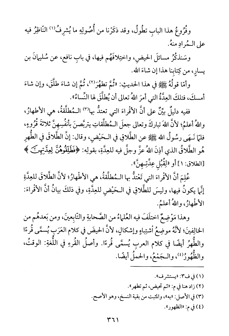 وهذا مَوْضِعٌ اختلَفَ فيه العُلماءُ من الصَّحابةِ والتّابِعينَ، ومن بَعدهُم من الخالِفينَ؛ لأنَّهُ موضِعُ اشتِباهٍ وإشكالٍ، لأنَّ الحيضَ في كلام العَرَبِ يُسمَّى قُرءًا والطُّهرُ أيضًا في كلام العربِ يُسمَّى قُرءًا. وأصلُ القُرءِ في اللُّغةِ: الوقتُ، والظُّهُورُ (¬٤)، والجَمْعُ، والحملُ أيضًا.