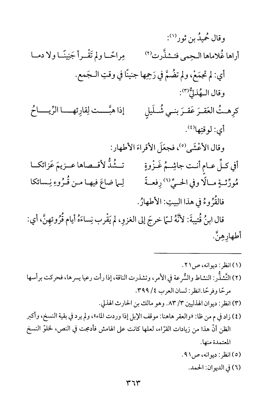 (¬٤) زاد في م من ظا: "والعقر ها هنا: موقف الإبل إذا وردت الماء"، ولم يرد في بقية النسخ، وأكبر الظن أنّ هذا من زيادات القرّاء، لعلها كانت على الهامش فأدمجت في النص، لخلوّ النسخ المعتمدة منها.