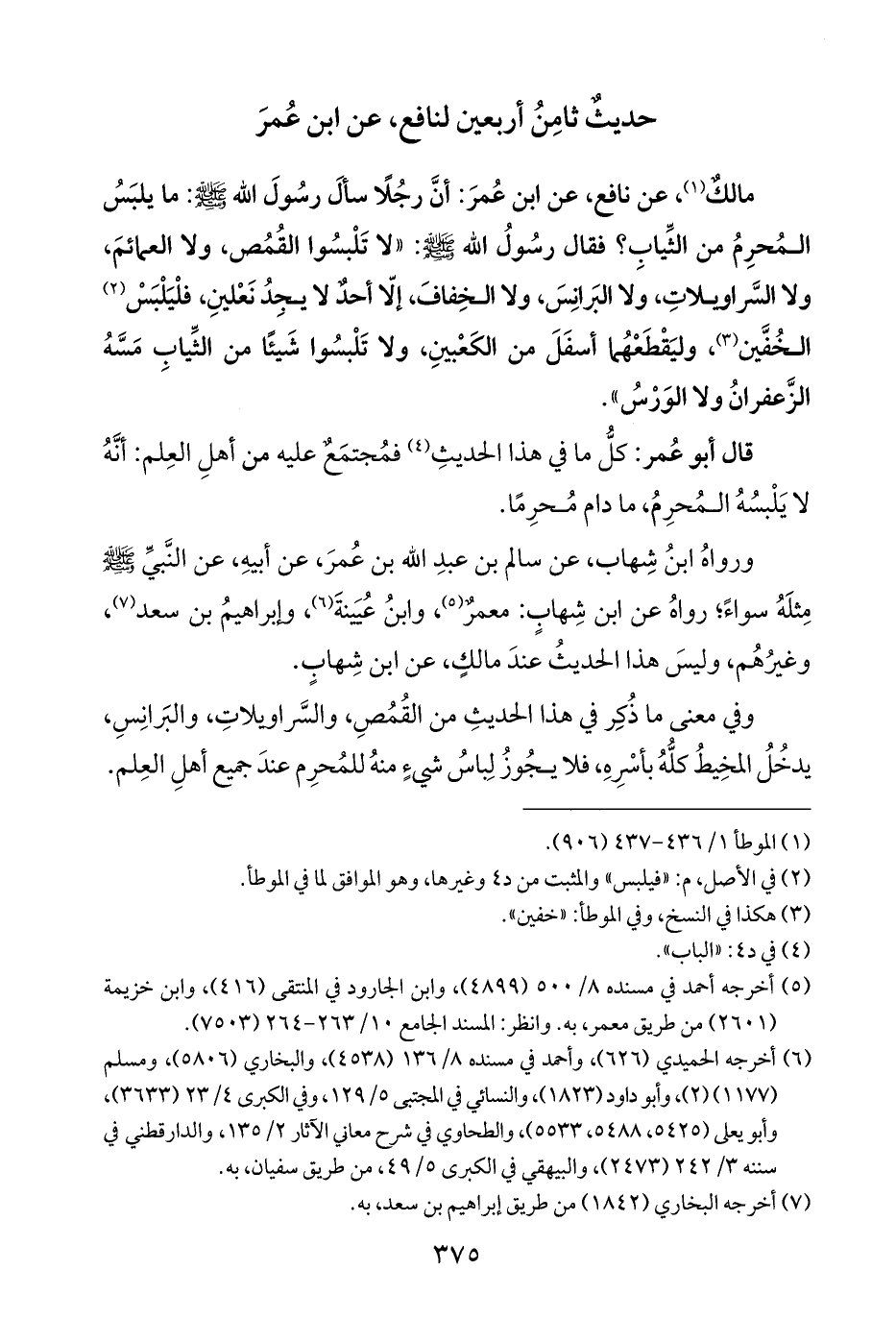 (¬١) الموطأ ١/ ٤٣٦ - ٤٣٧ (٩٠٦).