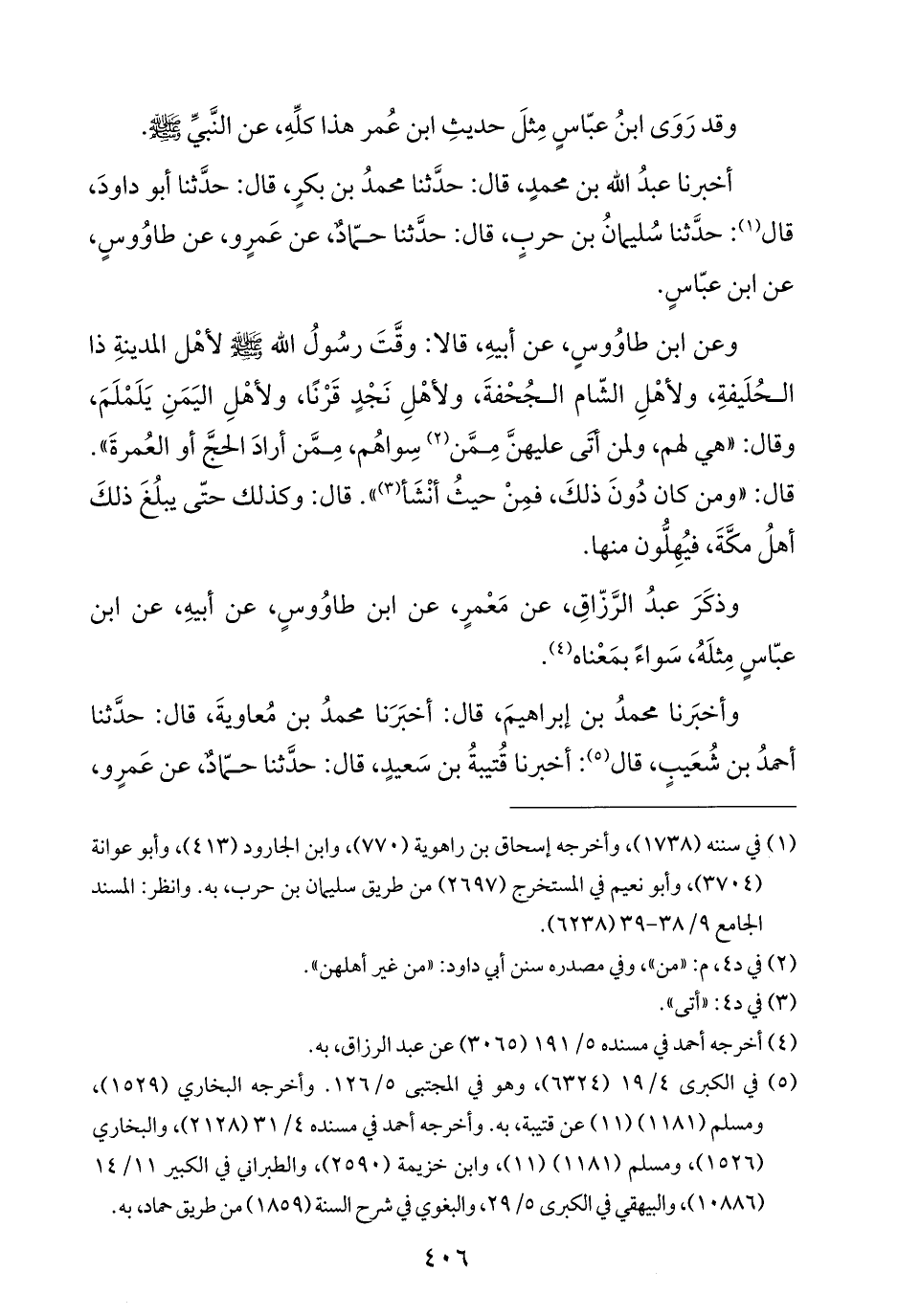 أخبرنا عبدُ الله بن محمدٍ، قال: حدَّثنا محمدُ بن بكرٍ، قال: حدَّثنا أبو داودَ، قال (¬١): حدَّثنا سُليمانُ بن حربٍ، قال: حدَّثنا حمّادٌ، عن عَمرٍو، عن طاوُوسٍ، عن ابن عبّاسٍ.